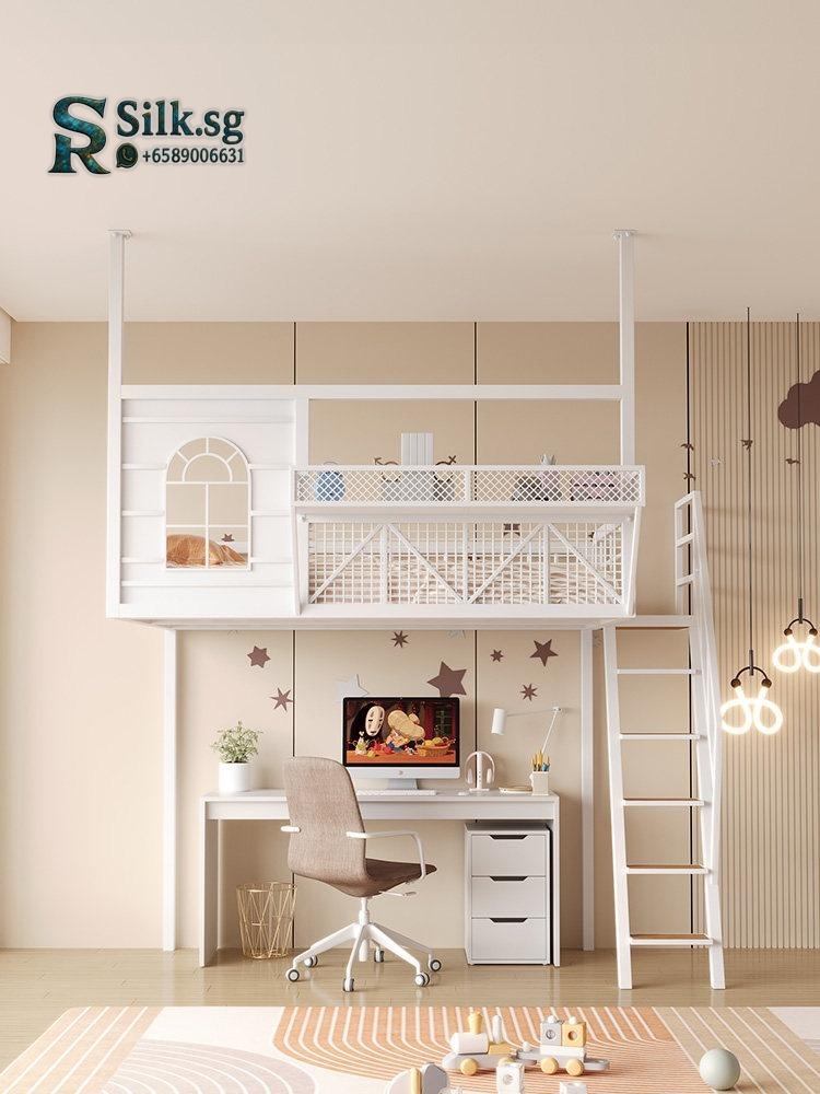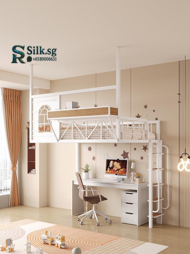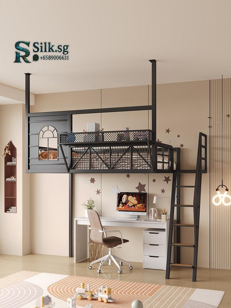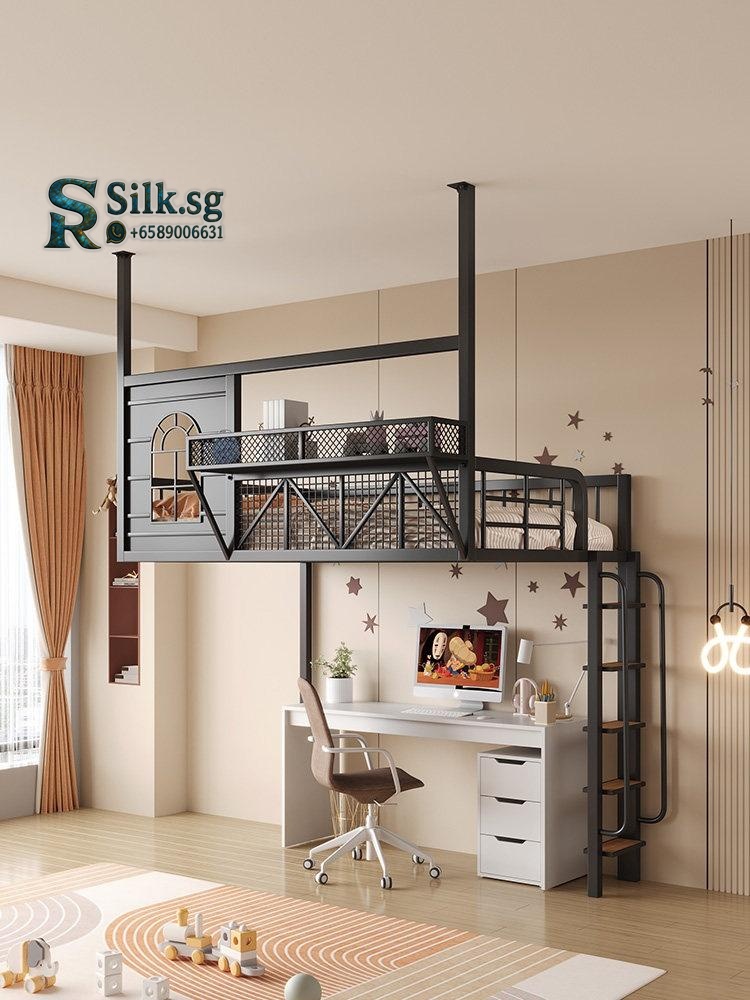 LoftBed – Space – Saving Iron Loft Bed with Desk for Small Rooms
