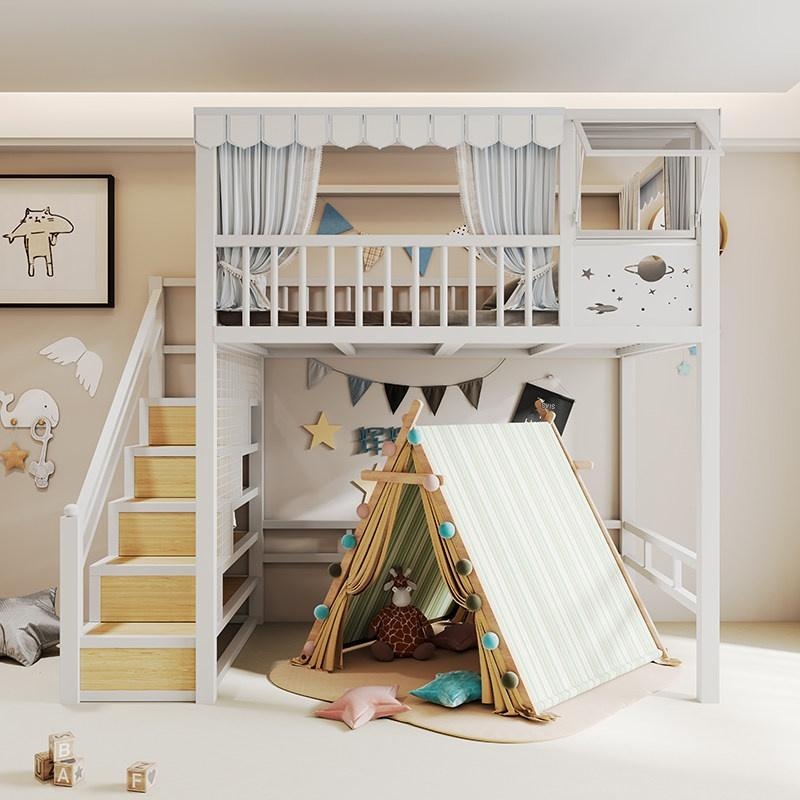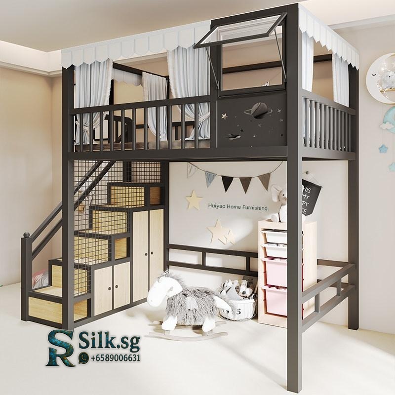 Qin Min – Customizable Steel Loft Bed with Stairs & Desk, Kids Bunk Be