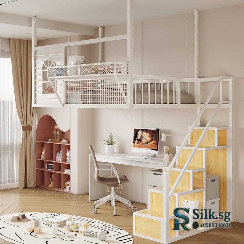 Qin Min – Customizable Steel Loft Bed with Stairs & Desk, Kids Bunk Be