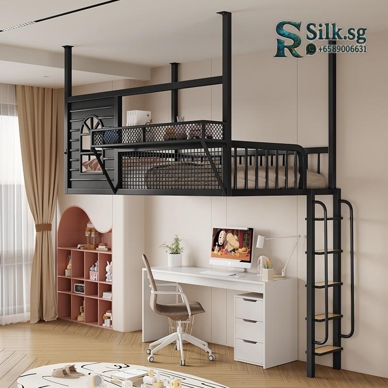 Maximize your small apartment space with this stylish Nordic loft bed. Its sturdy iron frame and built-in storage create a cozy, elevated sleeping area perfect for urban living. Customize your color and design to match your unique style and transform your room today.