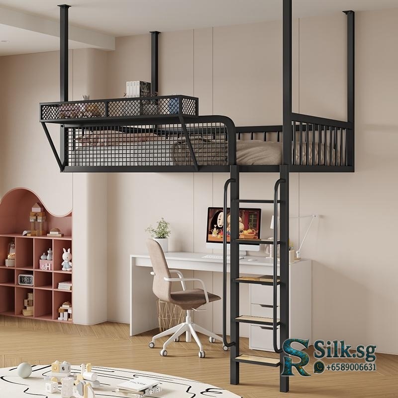 Zhujiafang – Modern Duplex Loft Bed with Split – Level Iron Frame & Fo