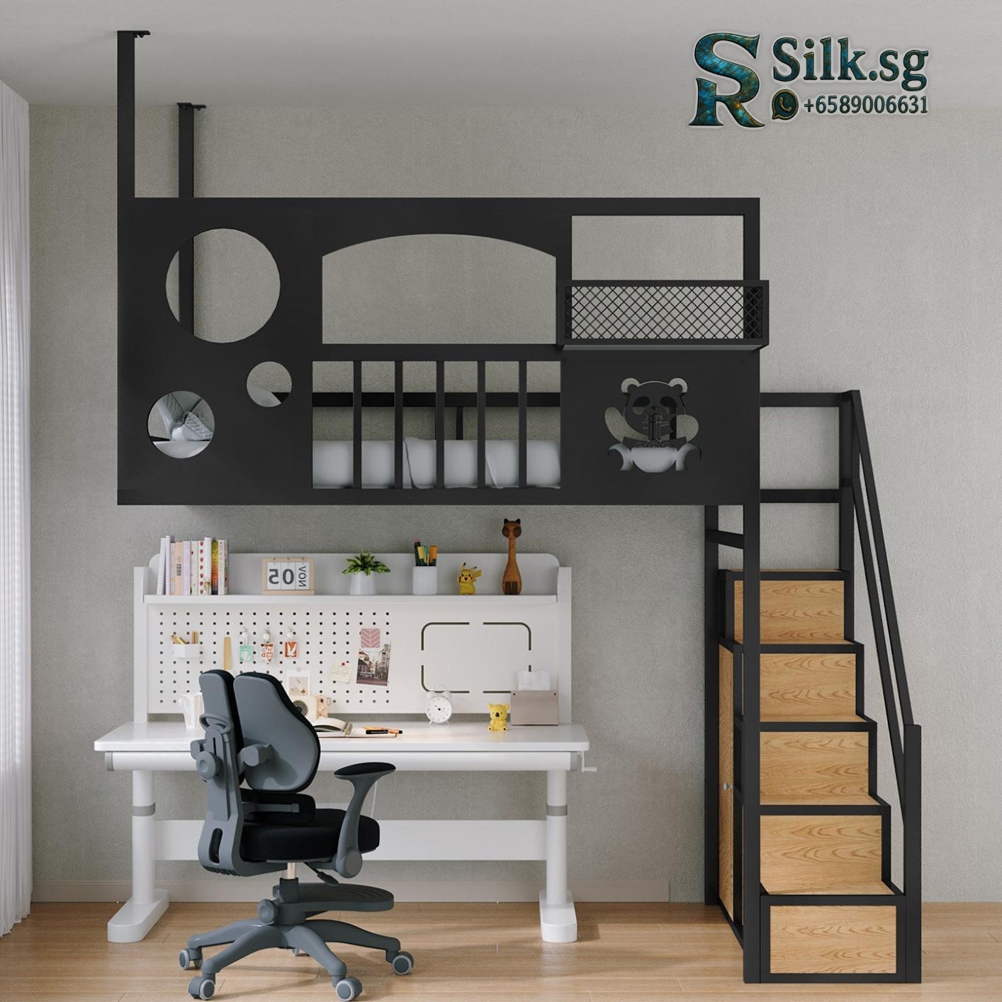 Ding Qi Xin – Nordic Loft Bed with Storage Shelf & Detachable Design