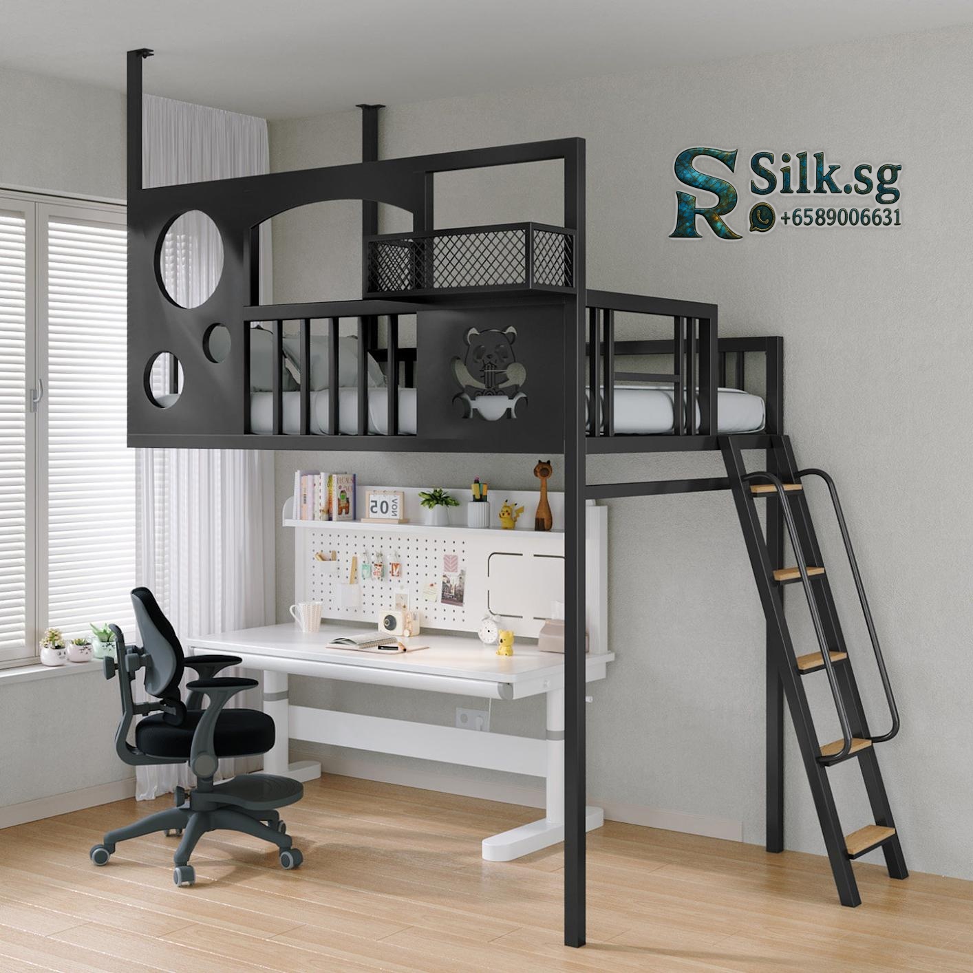 LoftBed – Space – Saving Iron Loft Bed with Desk for Small Rooms