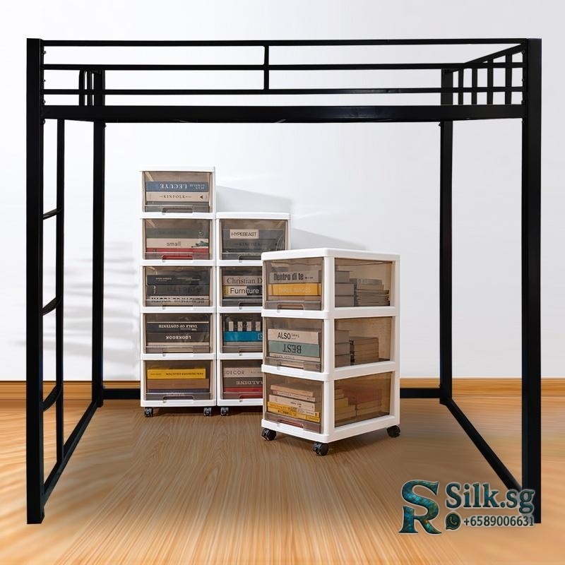 LoftBed – Space – Saving Iron Loft Bed with Storage & Ladder