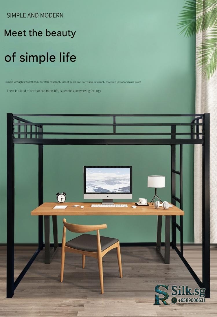 LoftBed – Space – Saving Iron Loft Bed with Desk for Small Rooms