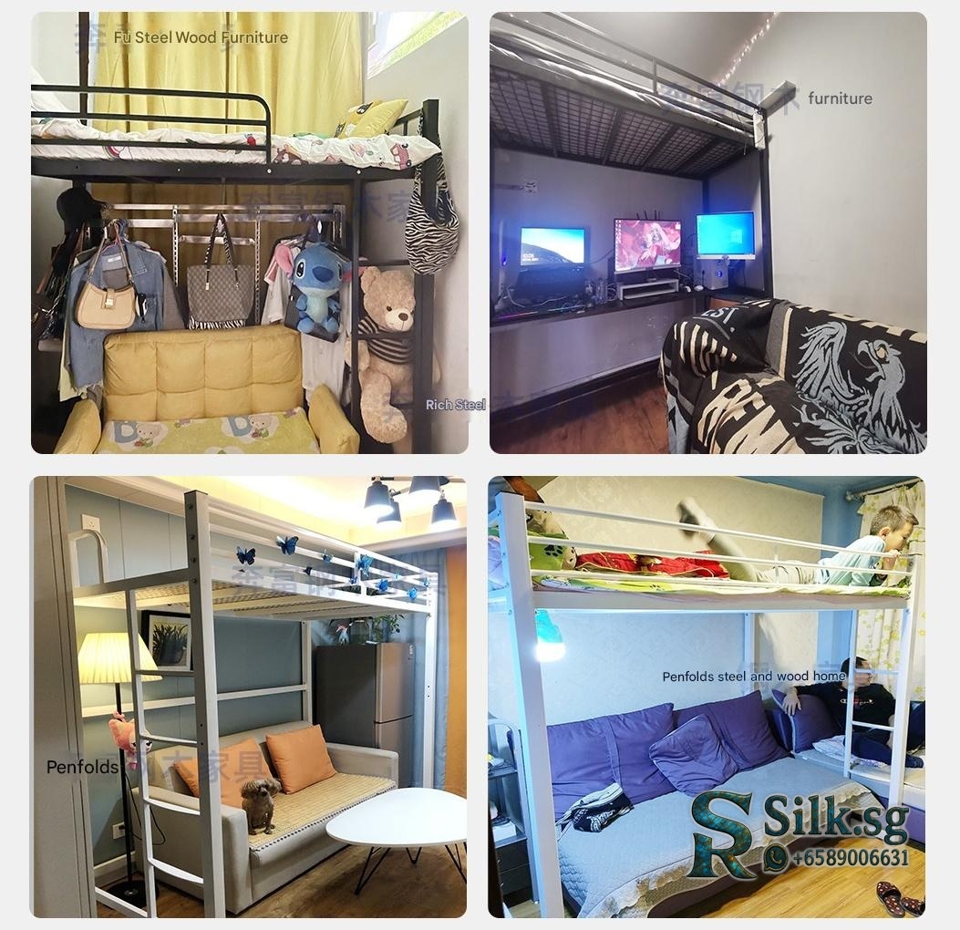 Zhibao – Customizable Steel Loft Bed with Desk & Storage for Small Spa