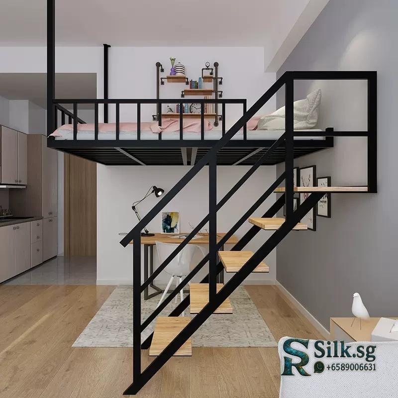 LoftBed – Space – Saving Iron Loft Bed with Desk for Small Rooms