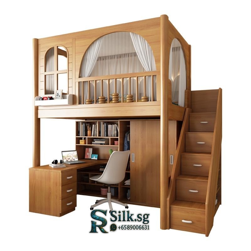 Maximize your space with this versatile loft bed that combines a sturdy sleeping area with a built-in desk and wardrobe. Perfect for students or small apartments, it offers a smart, all-in-one solution for sleeping, studying, and storage. Transform your room into a cozy, organized haven today.