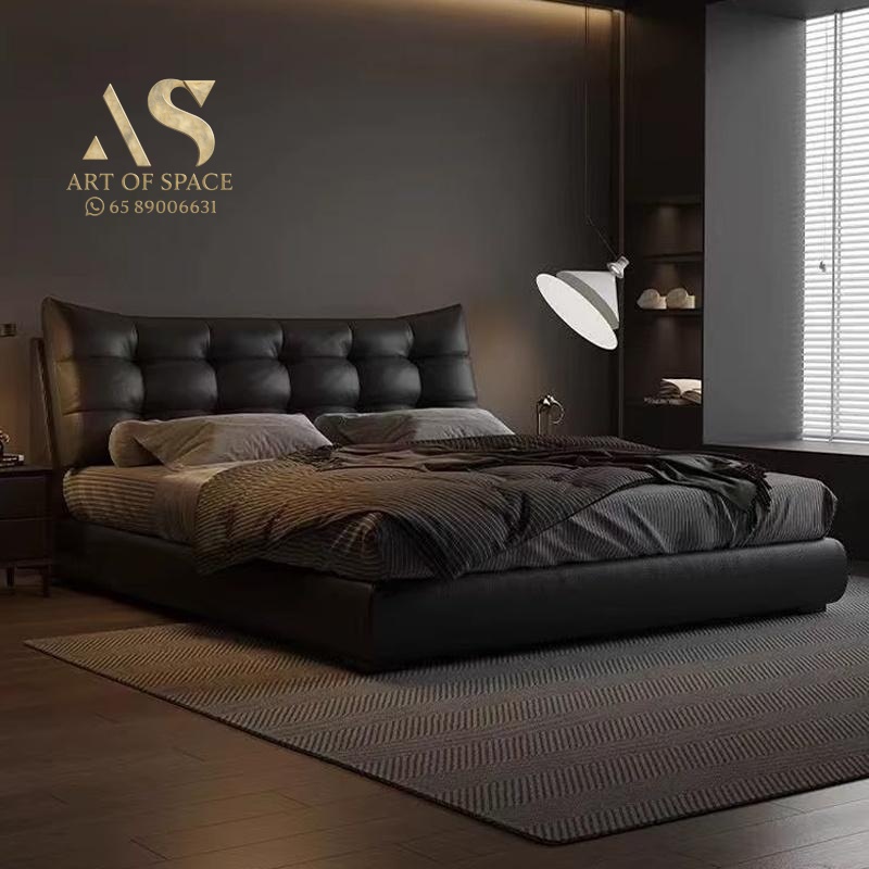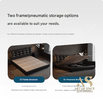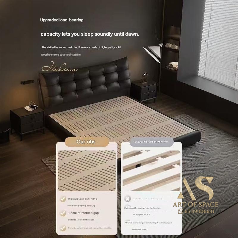 Aizhen – Italian Minimalist Genuine Leather Storage Bed 1.8m Double Mo