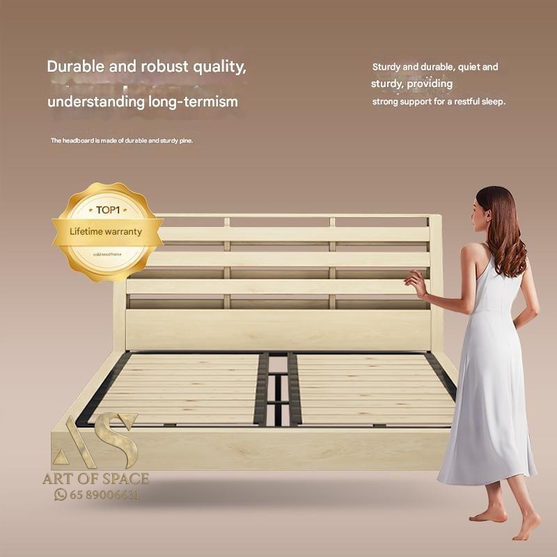 YueMengQianNian – Solid Wood Mid – Century Double Bed 1.8m Oak French