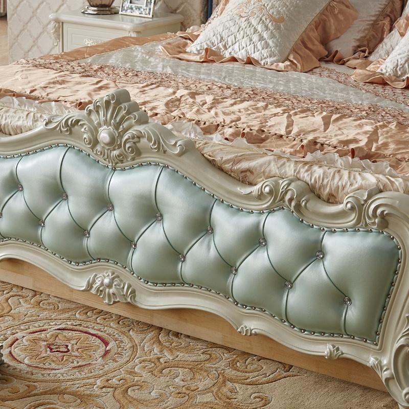 OakWood – Genuine Leather Tufted Bed with Storage, European Style Soli
