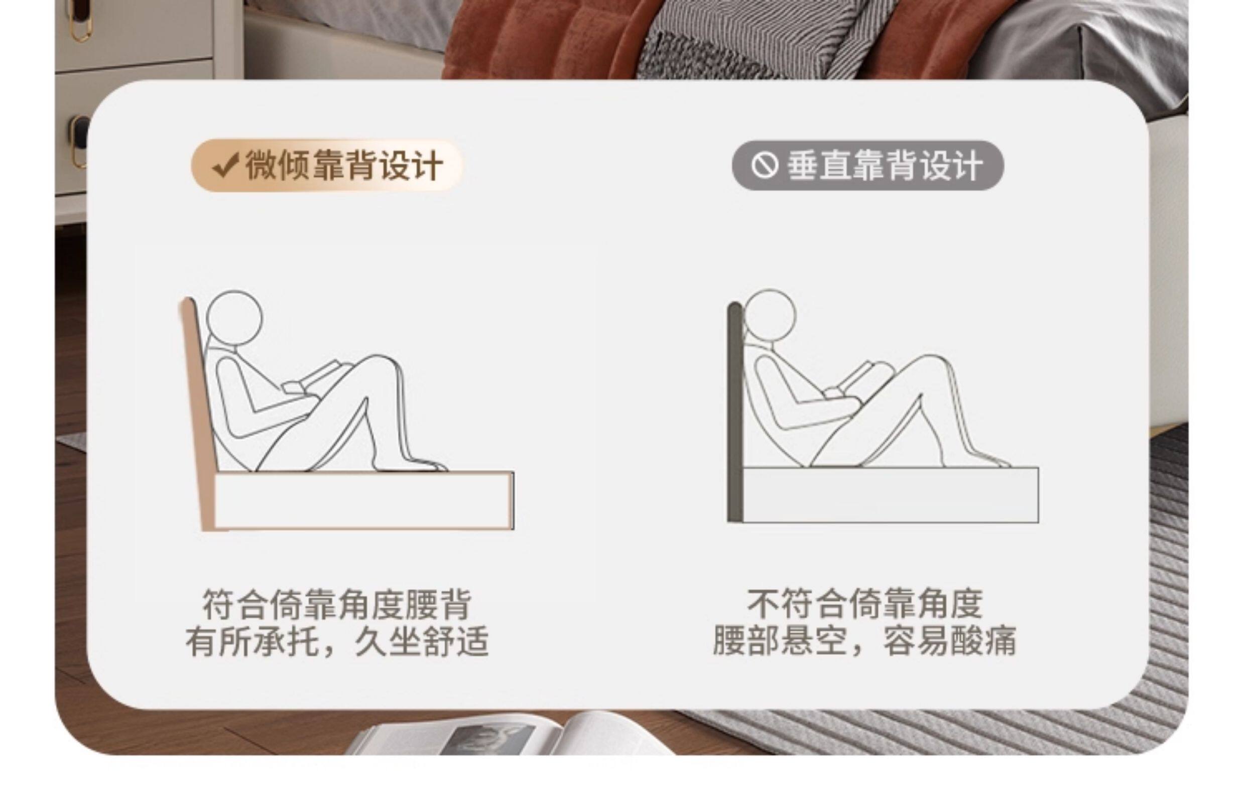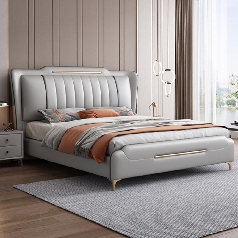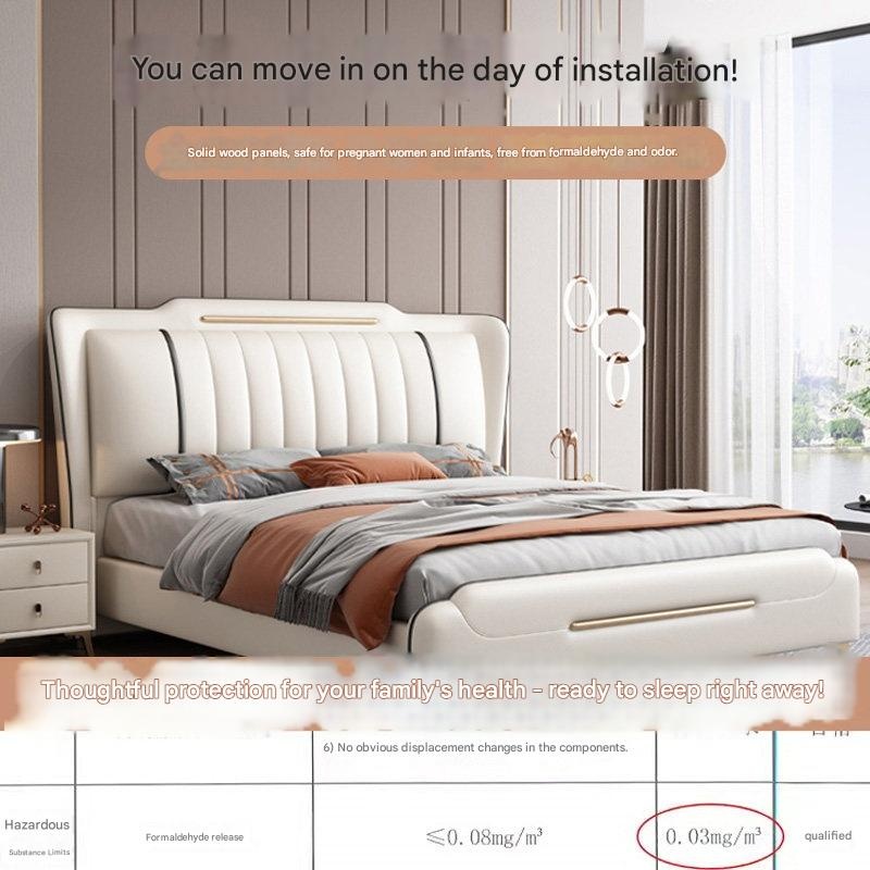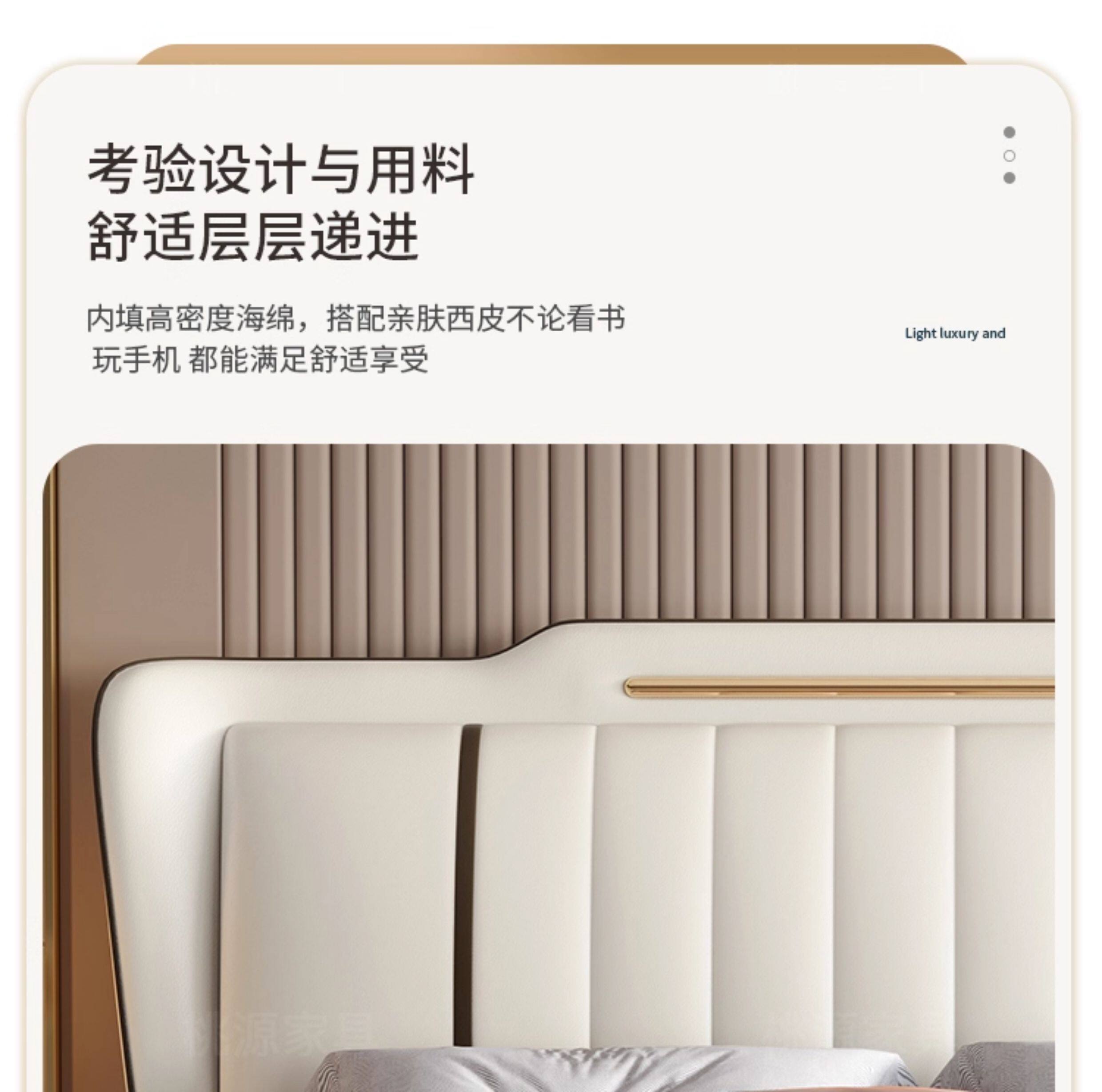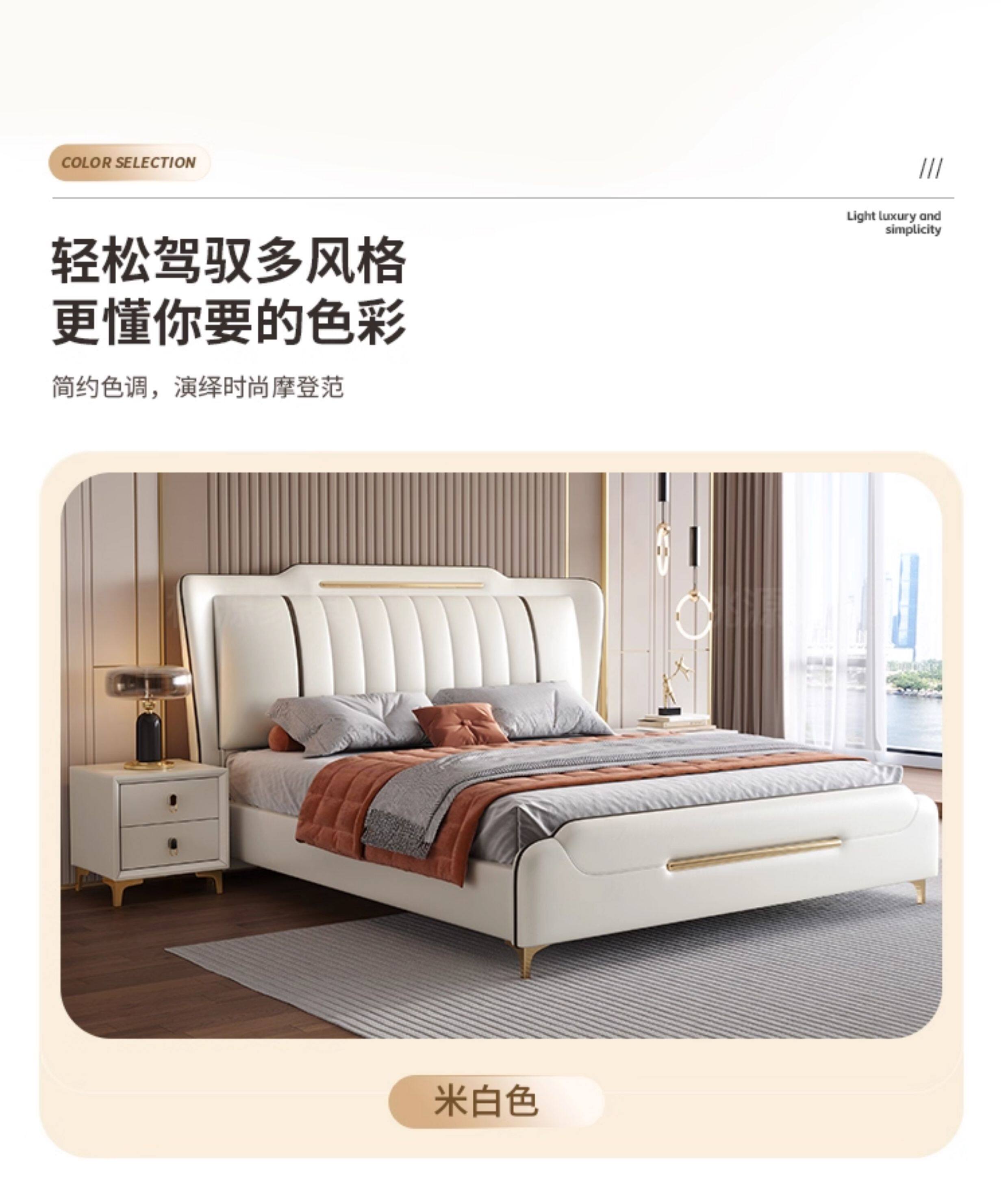 Jinbai Shang – Cream Genuine Leather Bed 1.8m Modern Master Bedroom