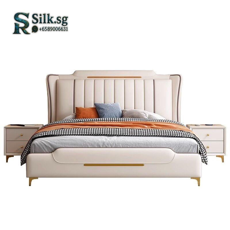 Yunfu – Italian Luxury Leather Bed 1.8m/1.5m Upholstered Solid Wood Fr