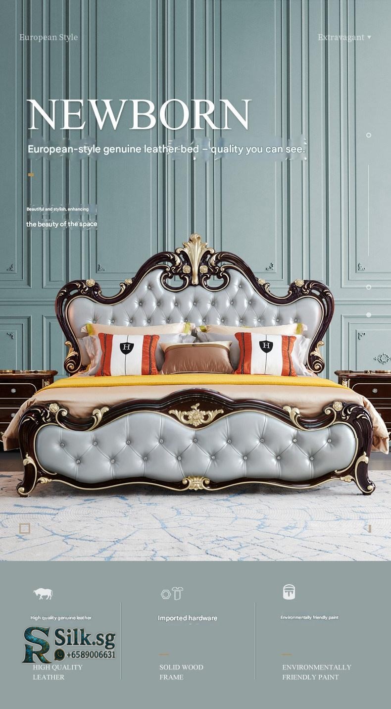 TS – 8001 – European Neoclassical Storage Bed with Gas Lift, 1.8m