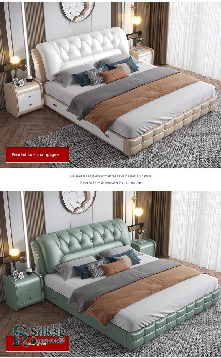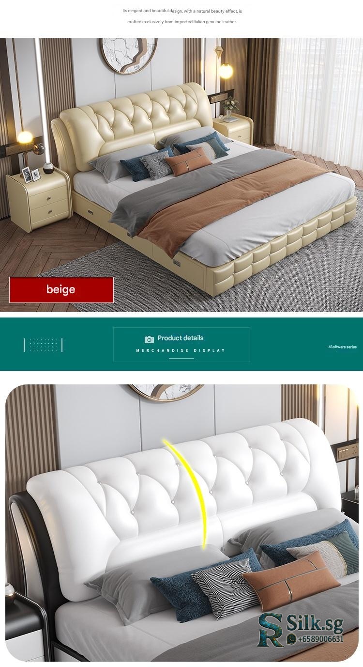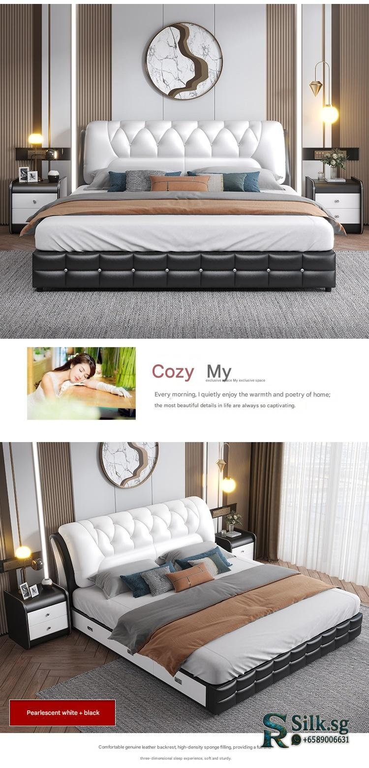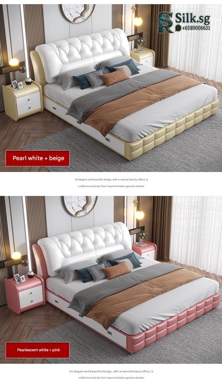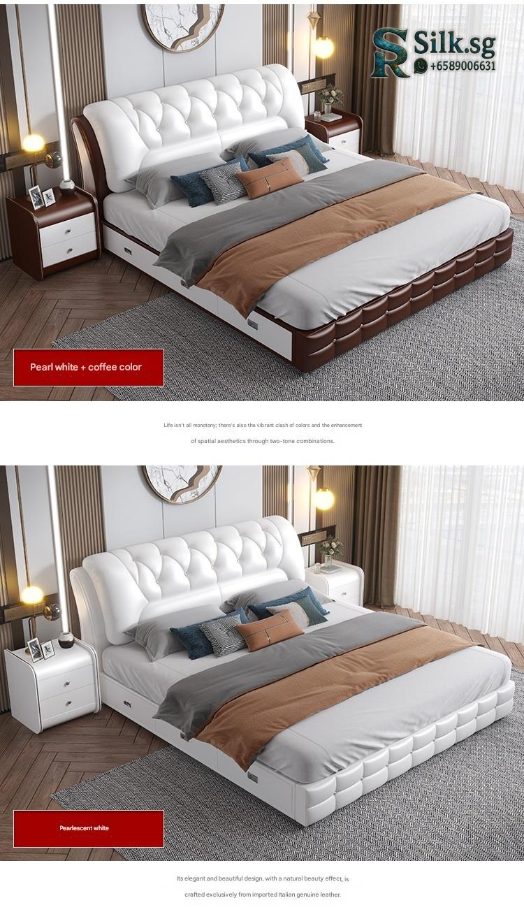 Genuine Leather Storage Bed – Modern Minimalist Double Bed with Soft B
