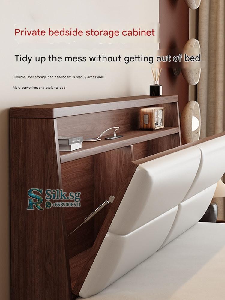 Aizhen – Italian Minimalist Genuine Leather Storage Bed 1.8m Double Mo