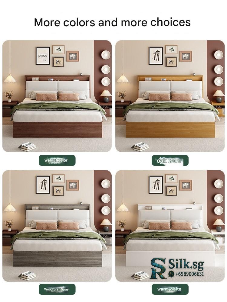 LUCKY TREE – Modern Hydraulic Storage Bed with Soft Upholstery & USB P
