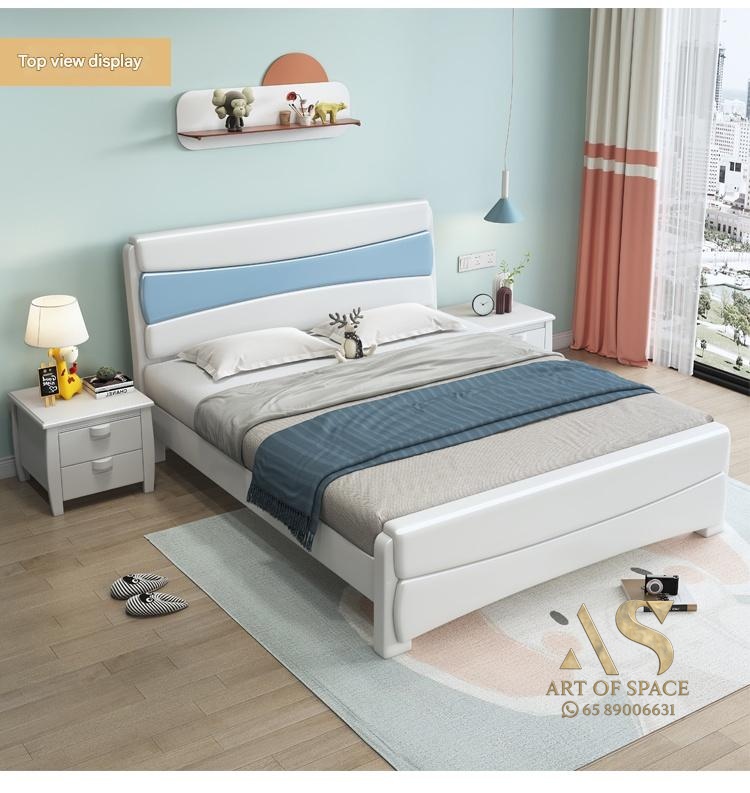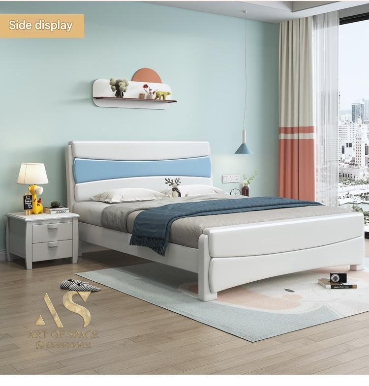 Fushi – Modern Kids Leather Storage Bed 1.2m Simple Design Teenager Be