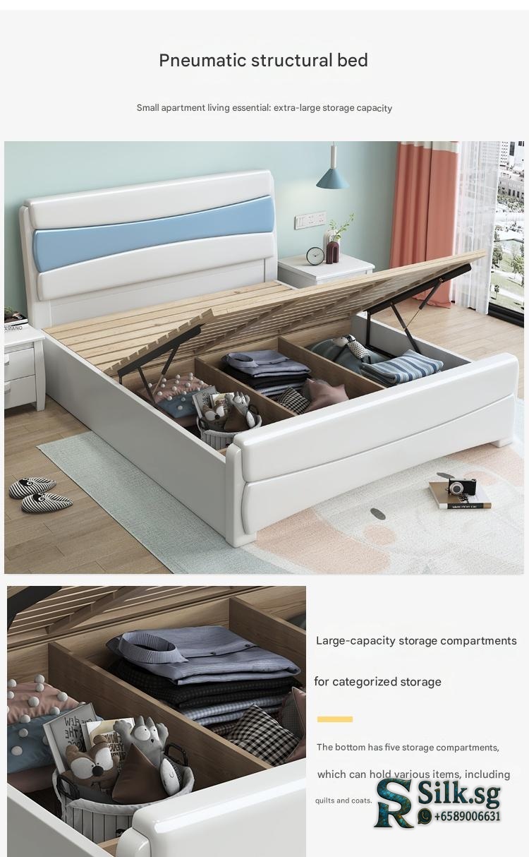 Genuine Leather Storage Bed – Modern Minimalist Double Bed with Soft B