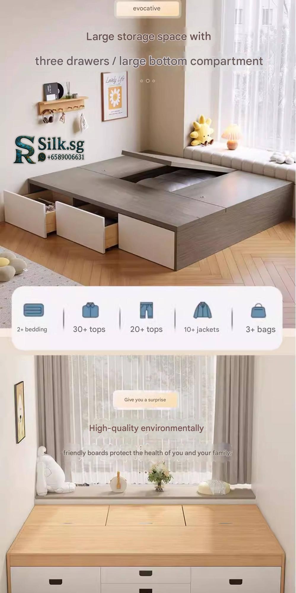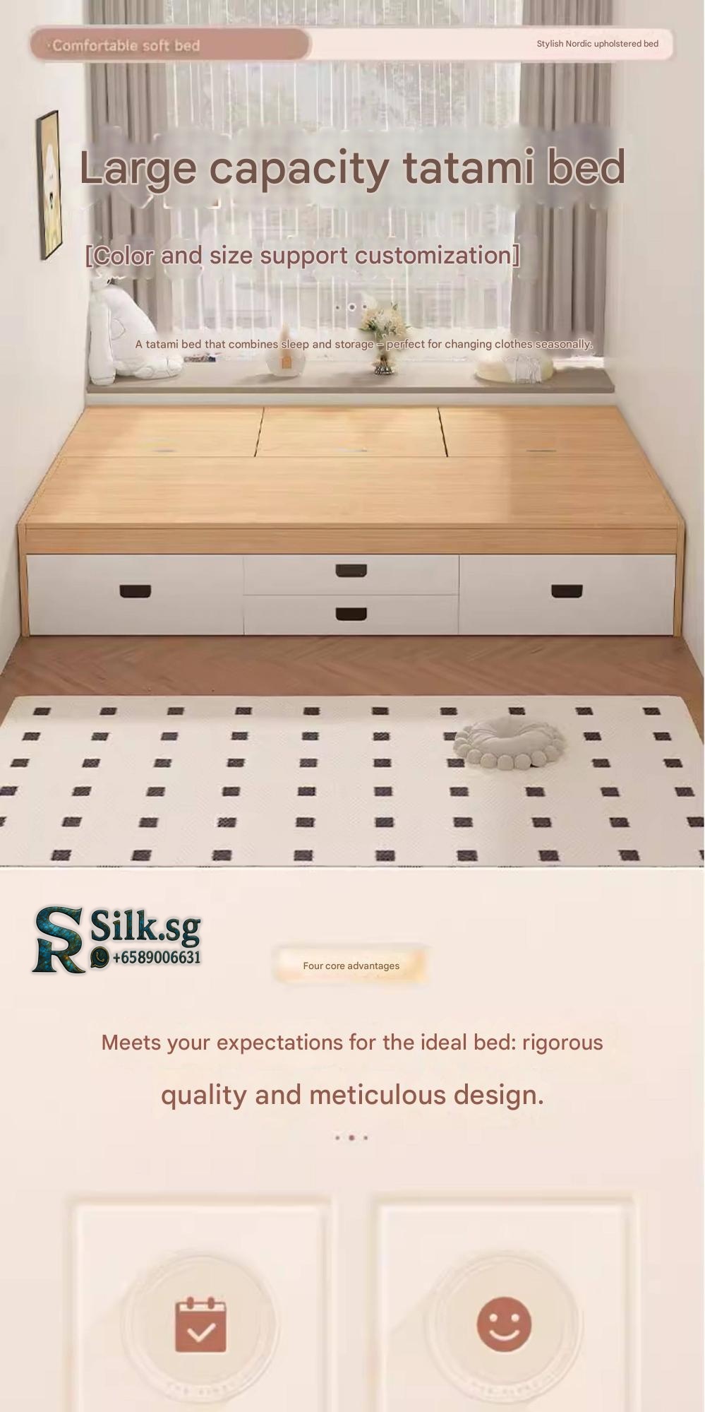 Experience modern comfort with this solid wood bed featuring spacious storage, perfect for maximizing space in rental rooms or master bedrooms. Its customizable design, eco-friendly materials, and stylish minimalist look make it ideal for anyone seeking functional, reliable, and cozy sleep space.