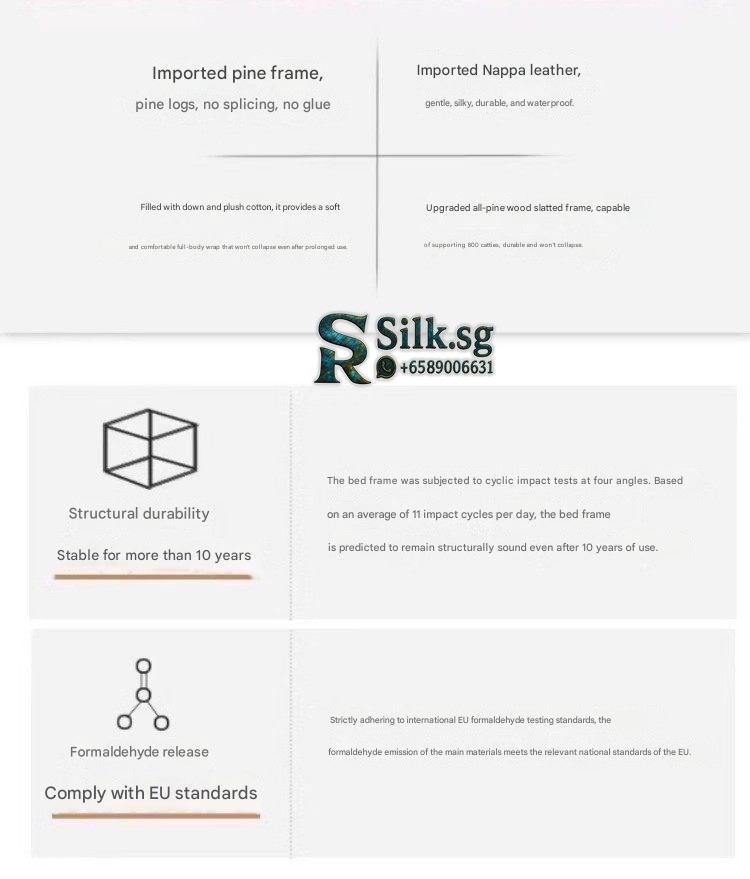 | Set | Bed + 20cm 3E Coir Spring Mattress (Supportive, Firm Feel), Bed + 20cm 3E Coir Spring Mattress + 1 Nightstand (Supportive, Firm Feel), Bed + 20cm 3E Coir Spring Mattress + 2 Nightstands (Supportive, Firm Feel), Bed + 20cm Cashmere Latex Cotton Spring Mattress (Soft Warm Wrap, Medium Feel), Bed + 20cm Cashmere Latex Cotton Spring Mattress + 1 Nightstand (Soft Warm Wrap, Medium Feel), Bed + 20cm Cashmere Latex Cotton Spring Mattress + 2 Nightstands (Soft Warm Wrap, Medium Feel), Bed + 20cm Natural Latex Spring Mattress (Pressure-Relieving, Medium Feel), Bed + 20cm Natural Latex Spring Mattress + 1 Nightstand (Pressure-Relieving, Medium Feel), Bed + 20cm Natural Latex Spring Mattress + 2 Nightstands (Pressure-Relieving, Medium Feel), Bed + 20cm Tencel Coir Cotton Spring Mattress (Soft Yet Firm, Firm Feel), Bed + 20cm Tencel Coir Cotton Spring Mattress + 1 Nightstand (Soft Yet Firm, Firm Feel), Bed + 20cm Tencel Coir Cotton Spring Mattress + 2 Nightstands (Soft Yet Firm, Firm Feel), Bed + 20cm Tencel Latex Cotton Spring Mattress (Double Soft, Medium Feel), Bed + 20cm Tencel Latex Cotton Spring Mattress + 1 Nightstand (Double Soft, Medium Feel), Bed + 20cm Tencel Latex Cotton Spring Mattress + 2 Nightstands (Double Soft, Medium Feel), Bed + 20cm Tencel Latex Pocket Spring Mattress (Quiet, Cloud-Like Feel), Bed + 20cm Tencel Latex Pocket Spring Mattress + 1 Nightstand (Quiet, Cloud-Like Feel), Bed + 20cm Tencel Latex Pocket Spring Mattress + 2 Nightstands (Quiet, Cloud-Like Feel), Leather Bed + 1 Nightstand (Nationwide Delivery & Installation), Leather Bed + 2 Nightstands (Contact for Surprise Price), Leather Bed Only (Factory Direct, Quality Assured) |