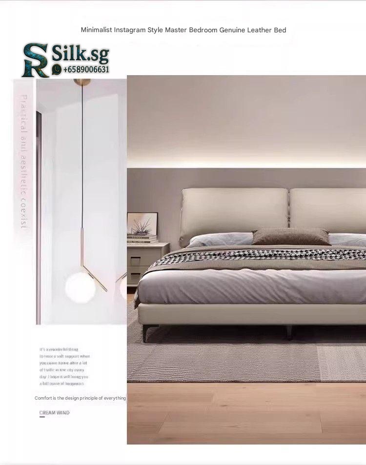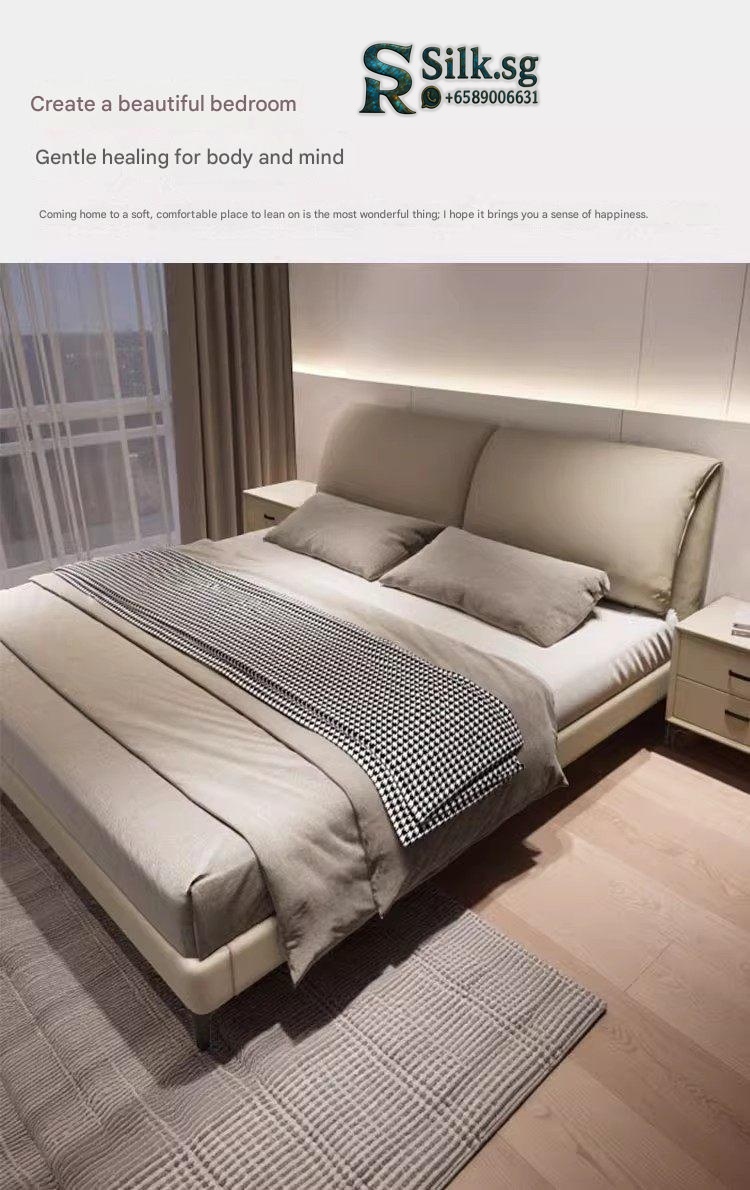 Aizhen – Italian Minimalist Genuine Leather Storage Bed 1.8m Double Mo