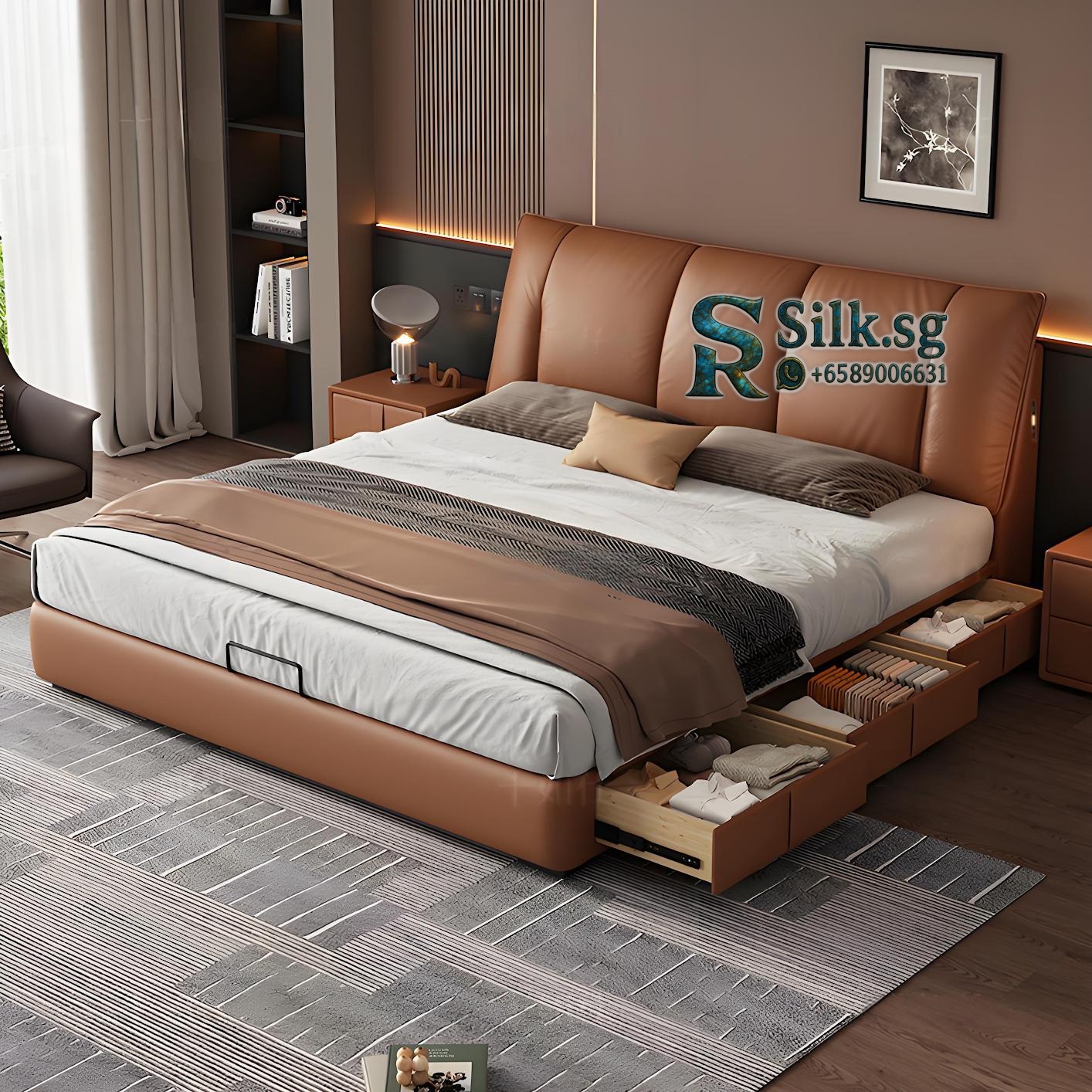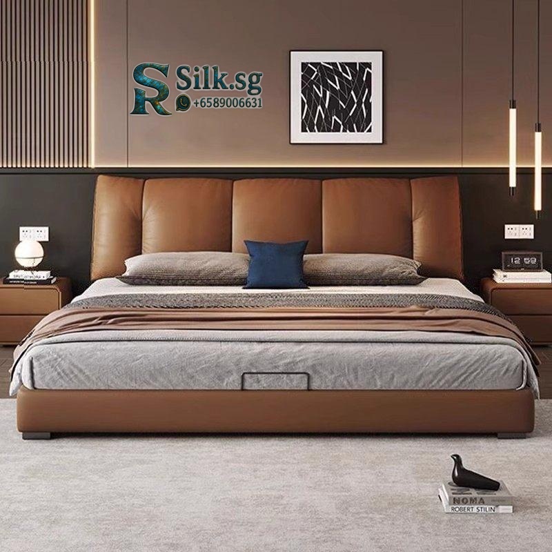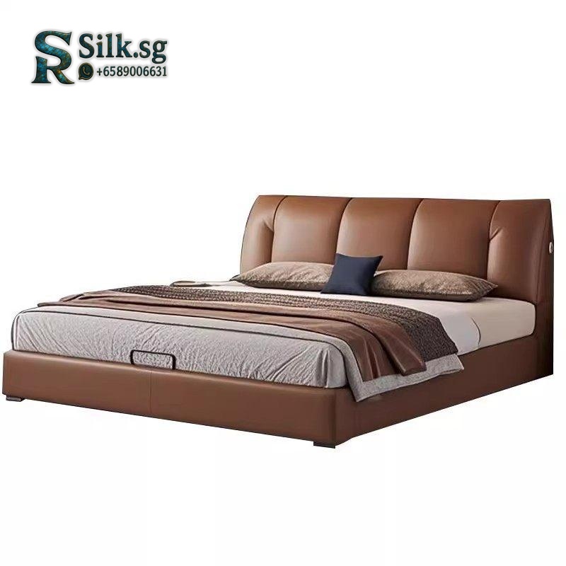 Aizhen – Italian Minimalist Genuine Leather Storage Bed 1.8m Double Be