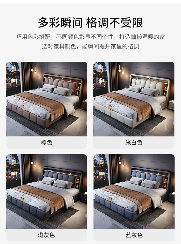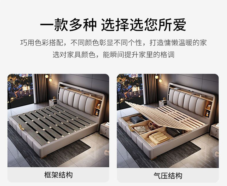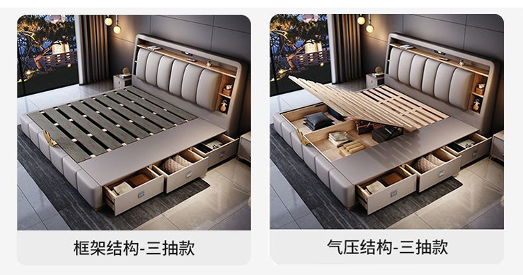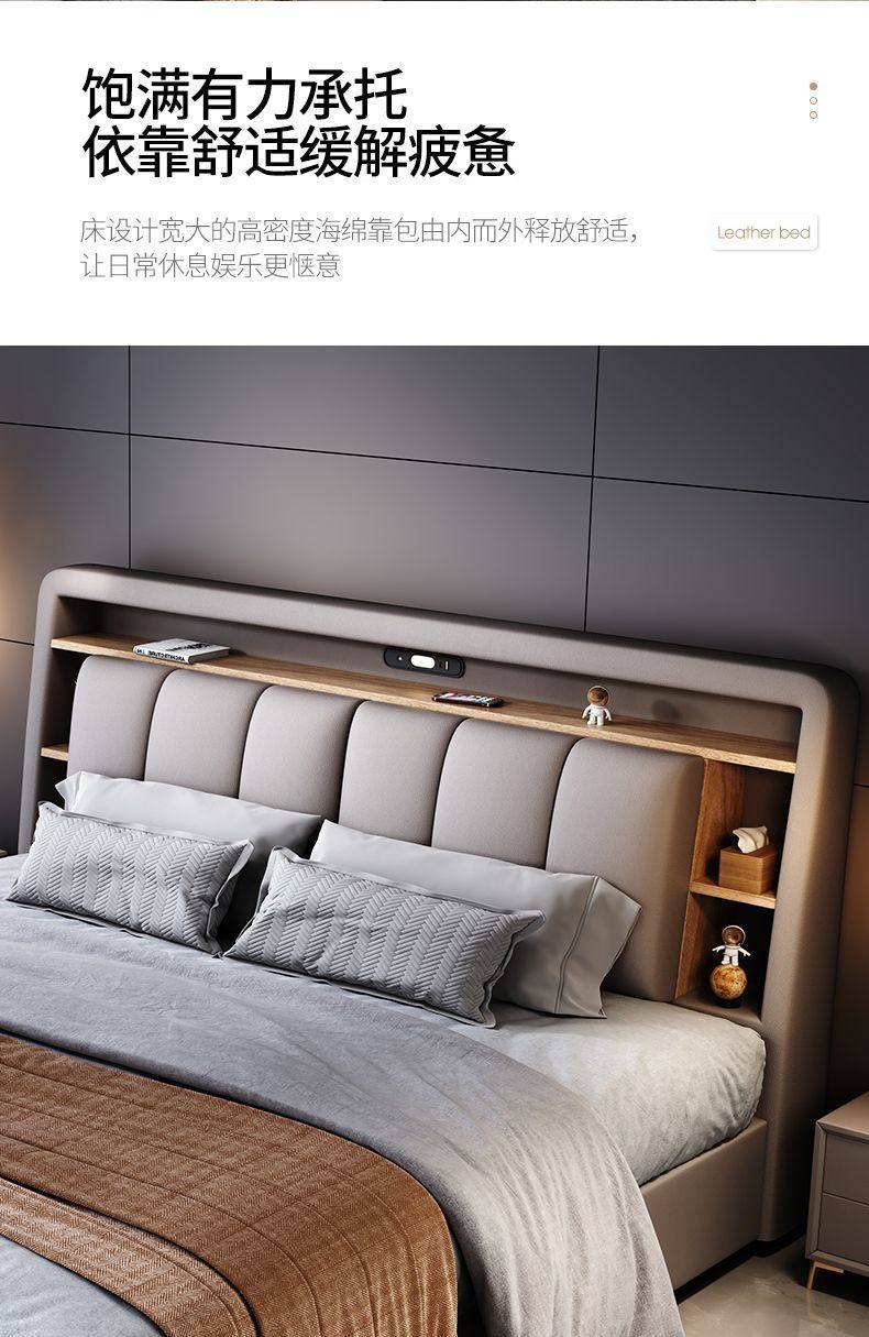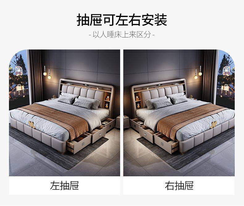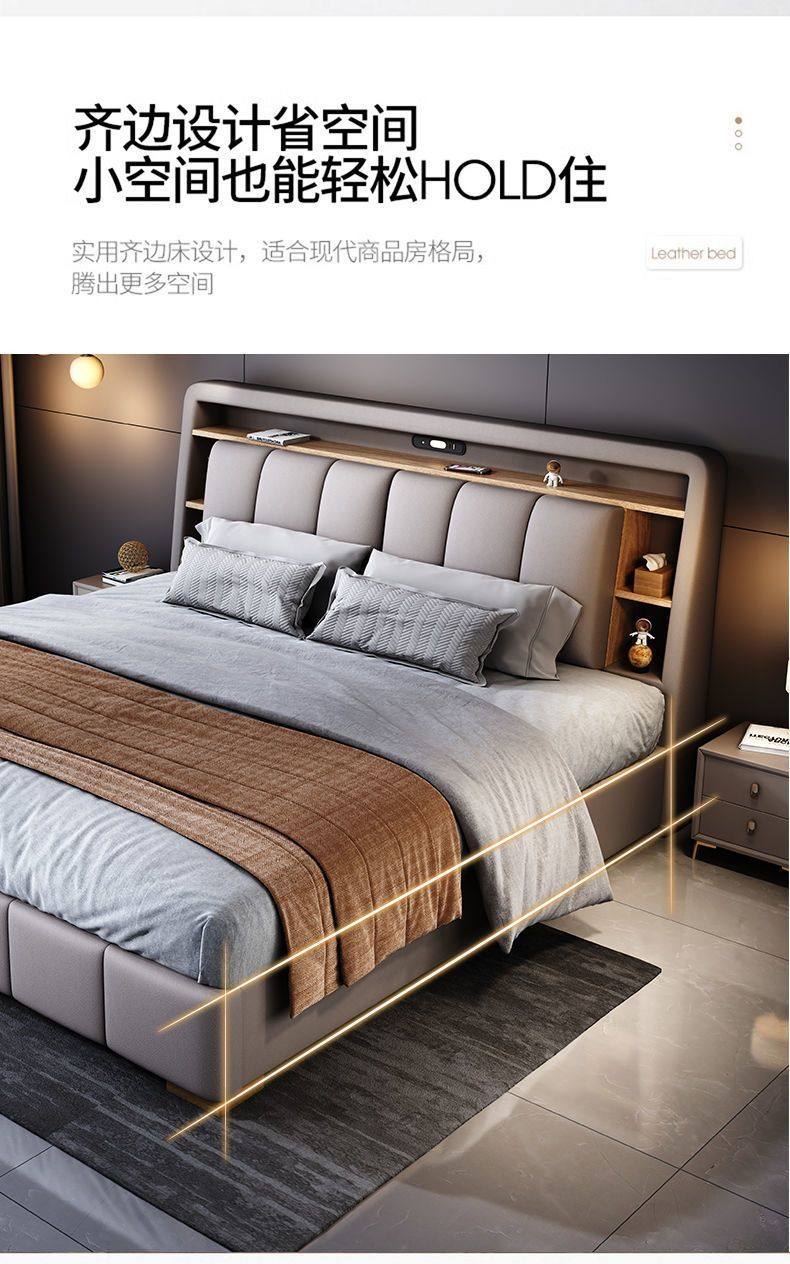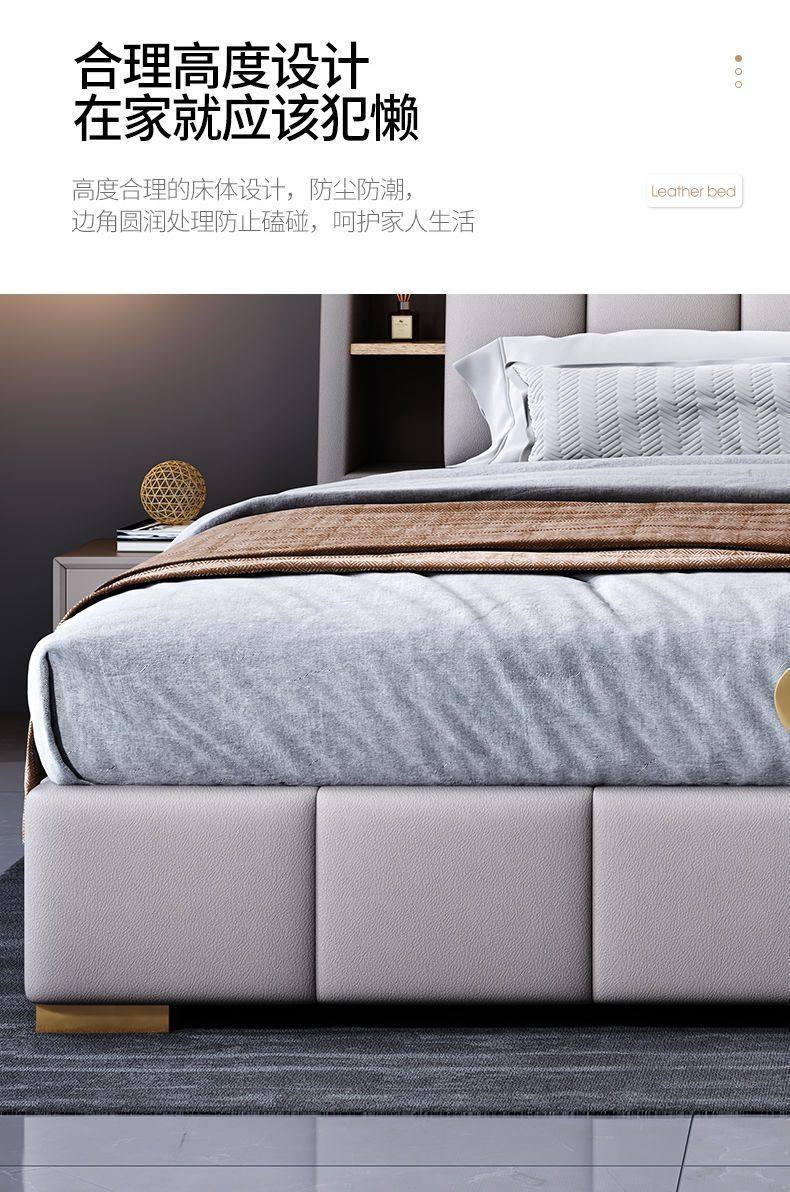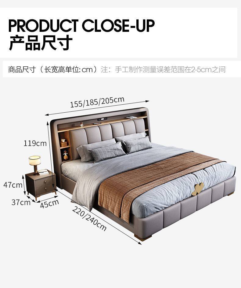 Experience ultimate comfort and modern elegance with this luxurious genuine leather bed, perfect for creating a stylish master bedroom retreat. Its versatile storage, soft-pack design, and premium craftsmanship make it a trusted choice for restful nights and lasting beauty.