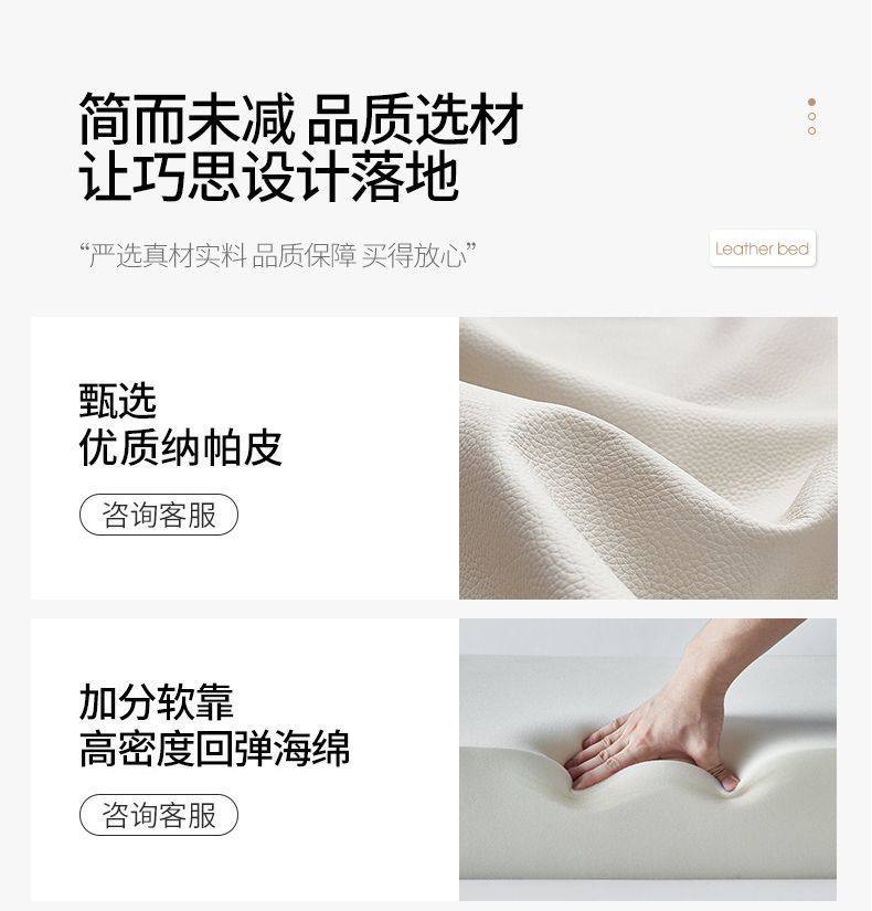 | Type | Bed + 20cm E coconut spring mattress + 1 cabinet (silent pine wood bedboard), Bed + 20cm E coconut spring mattress + 2 cabinets (silent pine wood bedboard), Bed + 20cm E coconut spring mattress with silent pine wood bedboard, Bed + 20cm Tencel cotton jute spring mattress (super cost-effective set), Bed + 20cm Tencel cotton jute spring mattress + 1 cabinet (super cost-effective set), Bed + 20cm Tencel cotton jute spring mattress + 2 cabinets (super cost-effective set), Bed + 20cm Tencel cotton latex cotton spring mattress (super cost-effective set), Bed + 20cm Tencel cotton latex cotton spring mattress + 1 cabinet (super cost-effective set), Bed + 20cm Tencel cotton latex cotton spring mattress + 2 cabinets (super cost-effective set), Bed + 20cm eco-friendly latex spring mattress (contact customer service for best price), Bed + 20cm eco-friendly latex spring mattress + 1 cabinet (contact customer service for best price), Bed + 20cm eco-friendly latex spring mattress + 2 cabinets (contact customer service for best price), Bed + 20cm velvet and cotton spring mattress (popular mattress set), Bed + 20cm velvet and cotton spring mattress + 1 cabinet (popular mattress set), Bed + 20cm velvet and cotton spring mattress + 2 cabinets (popular mattress set), Bed + 22cm noise-reducing independent pocket spring mattress (luxury recommended set), Bed + 22cm noise-reducing independent pocket spring mattress + 1 cabinet (luxury recommended set), Bed + 22cm noise-reducing independent pocket spring mattress + 2 cabinets (luxury recommended set), Napa leather bed + 1 bedside table (delivery, assembly included), Napa leather bed + 2 bedside tables (10-year warranty, worry-free after-sales), Napa leather single bed (high-quality durable leather) |