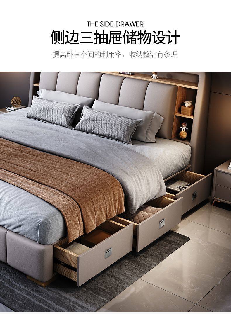 Italian Multi-Functi – Italian Multi-Functional Genuine Leather Bed Light Luxury Modern Minim