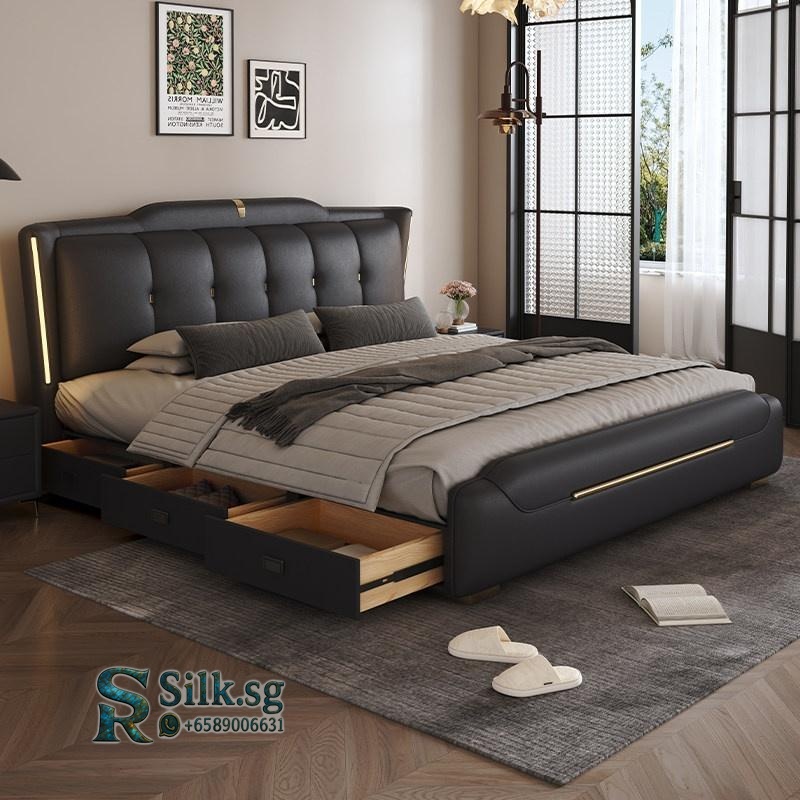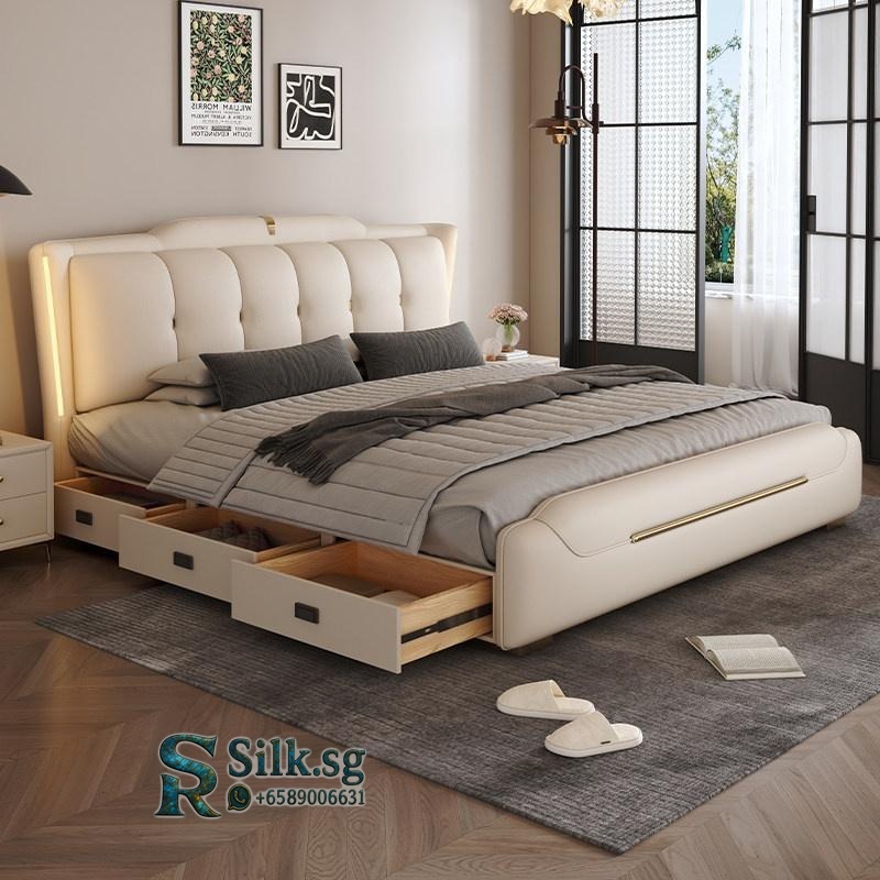 Aizhen – Italian Minimalist Genuine Leather Storage Bed 1.8m Double Mo