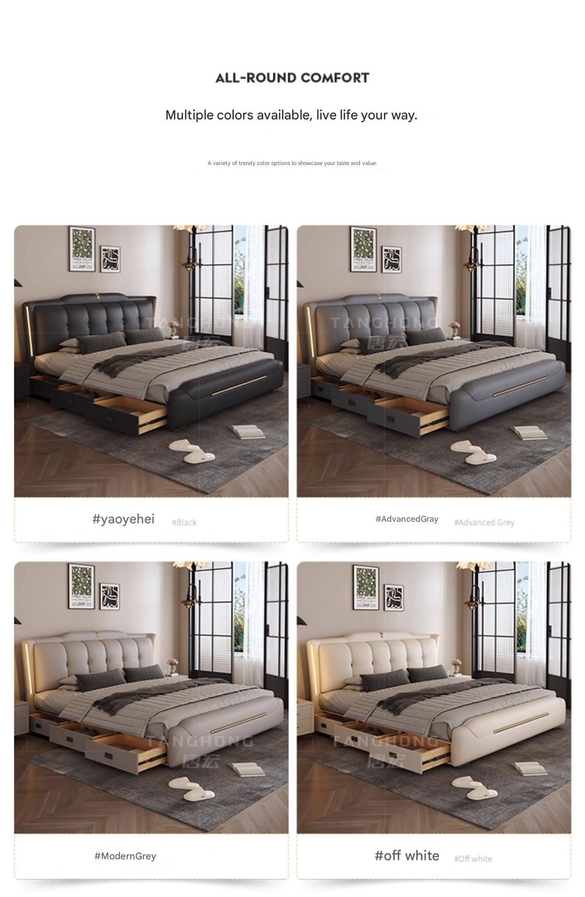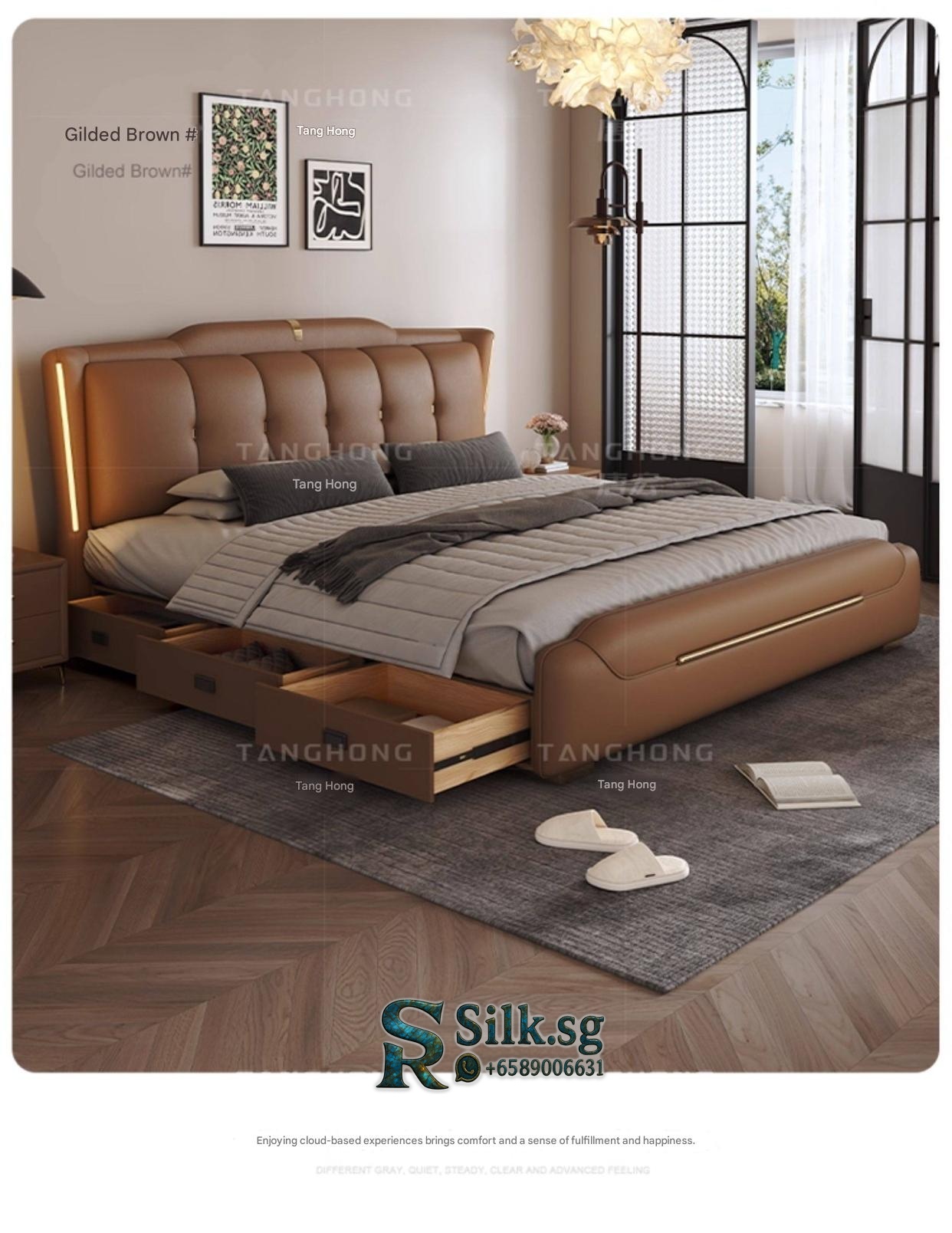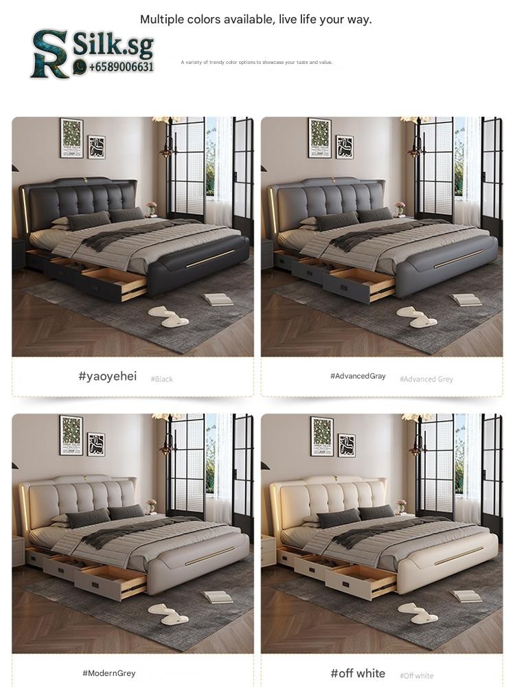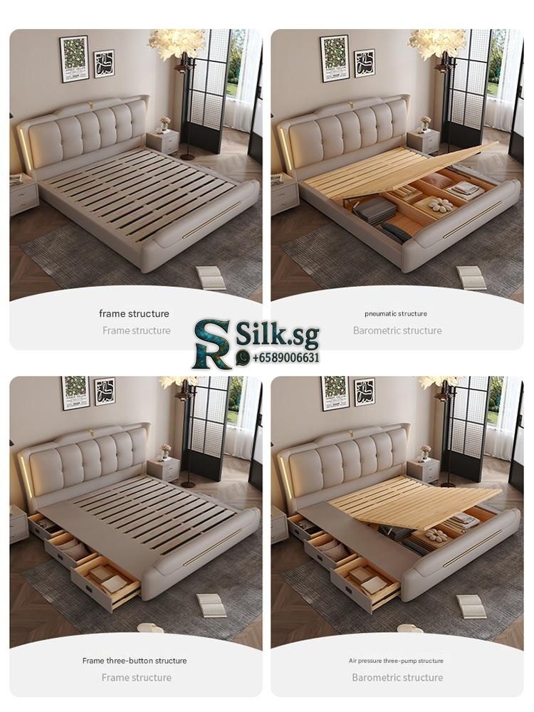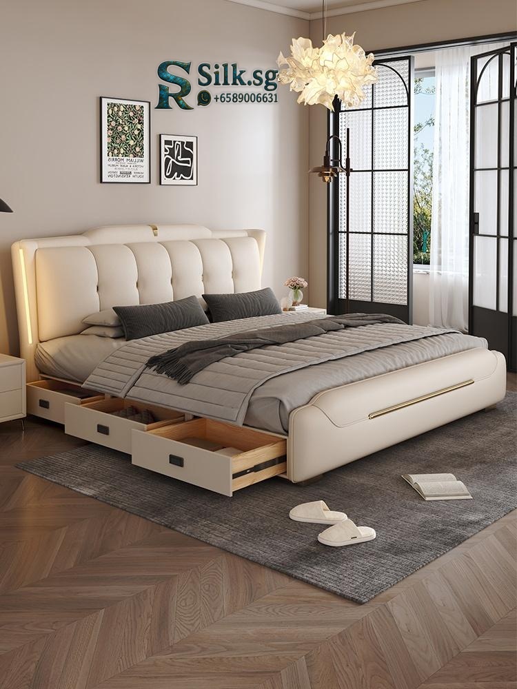 0757 – Solid Wood Storage Bed 1.8m Genuine Leather Upholstered Modern