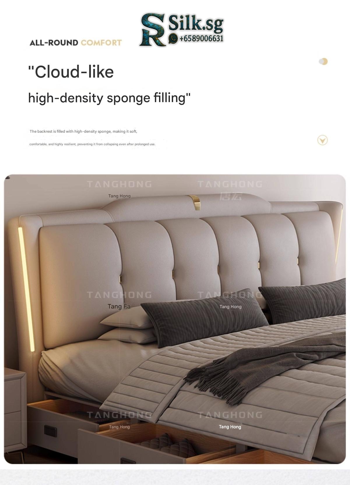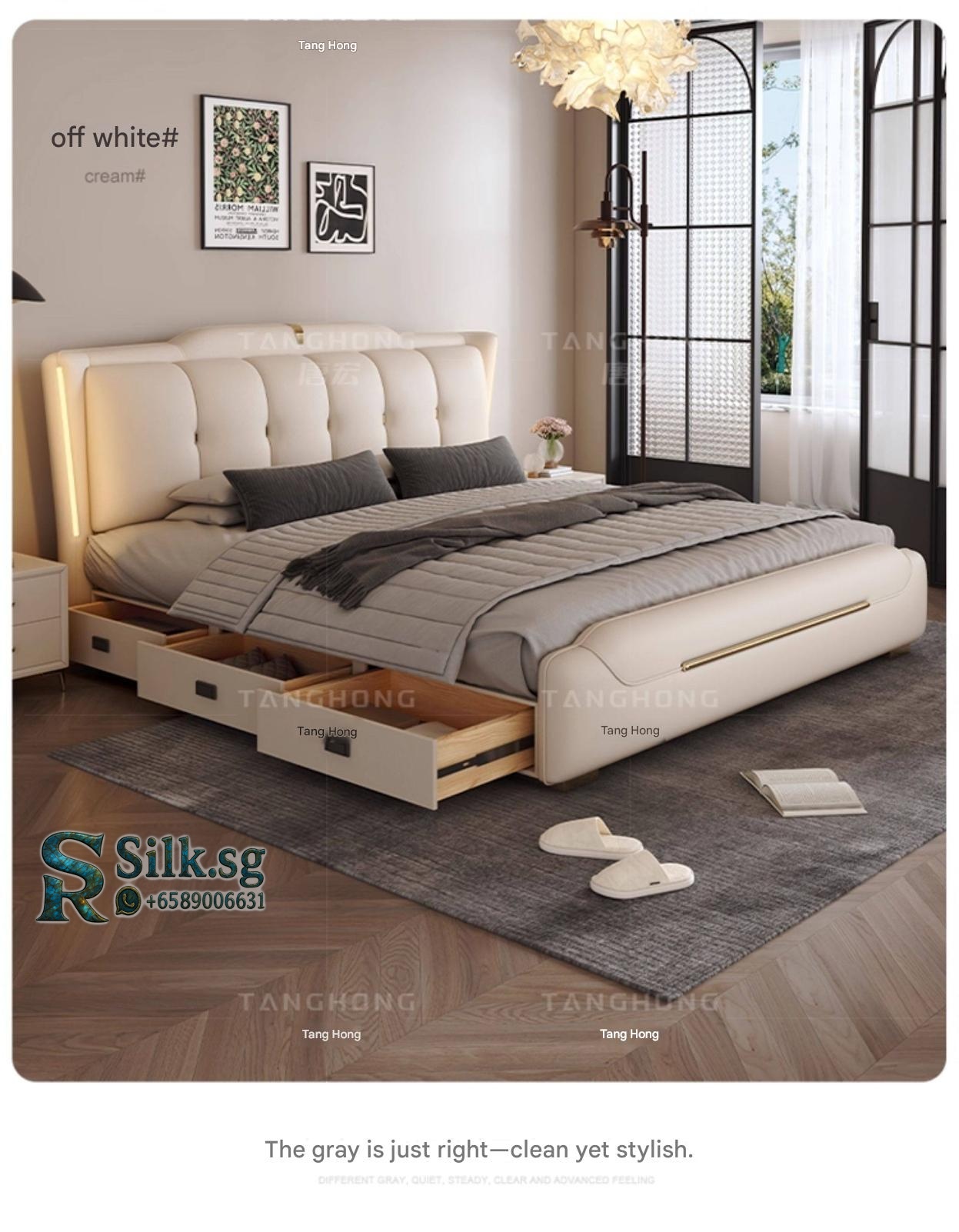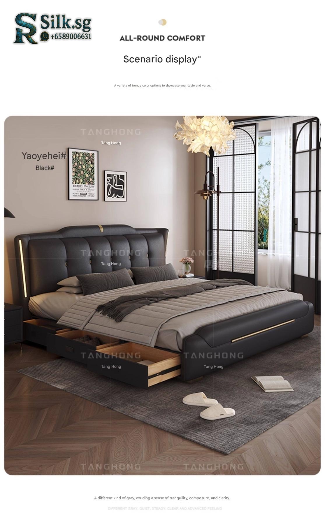 0757 – Solid Wood Storage Bed 1.8m Genuine Leather Upholstered Modern