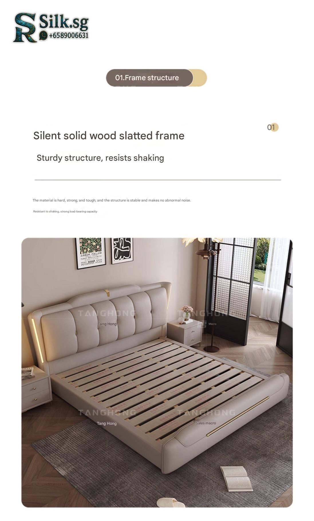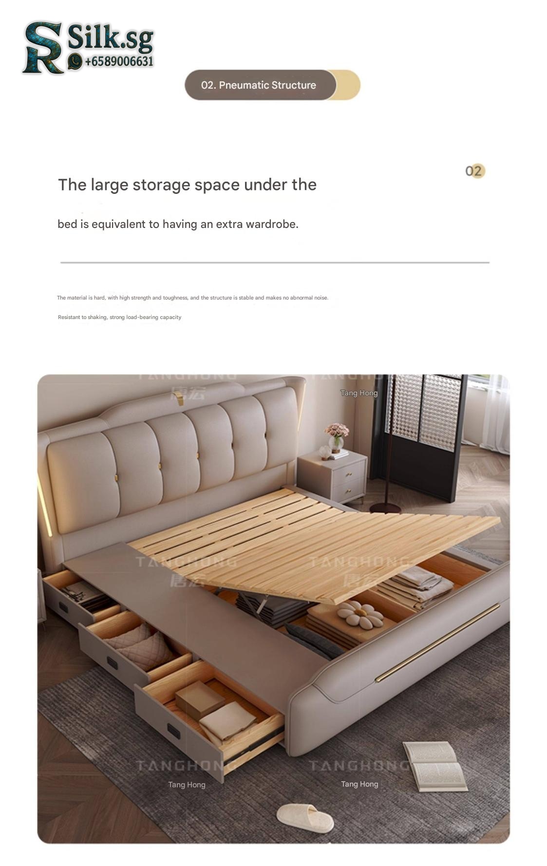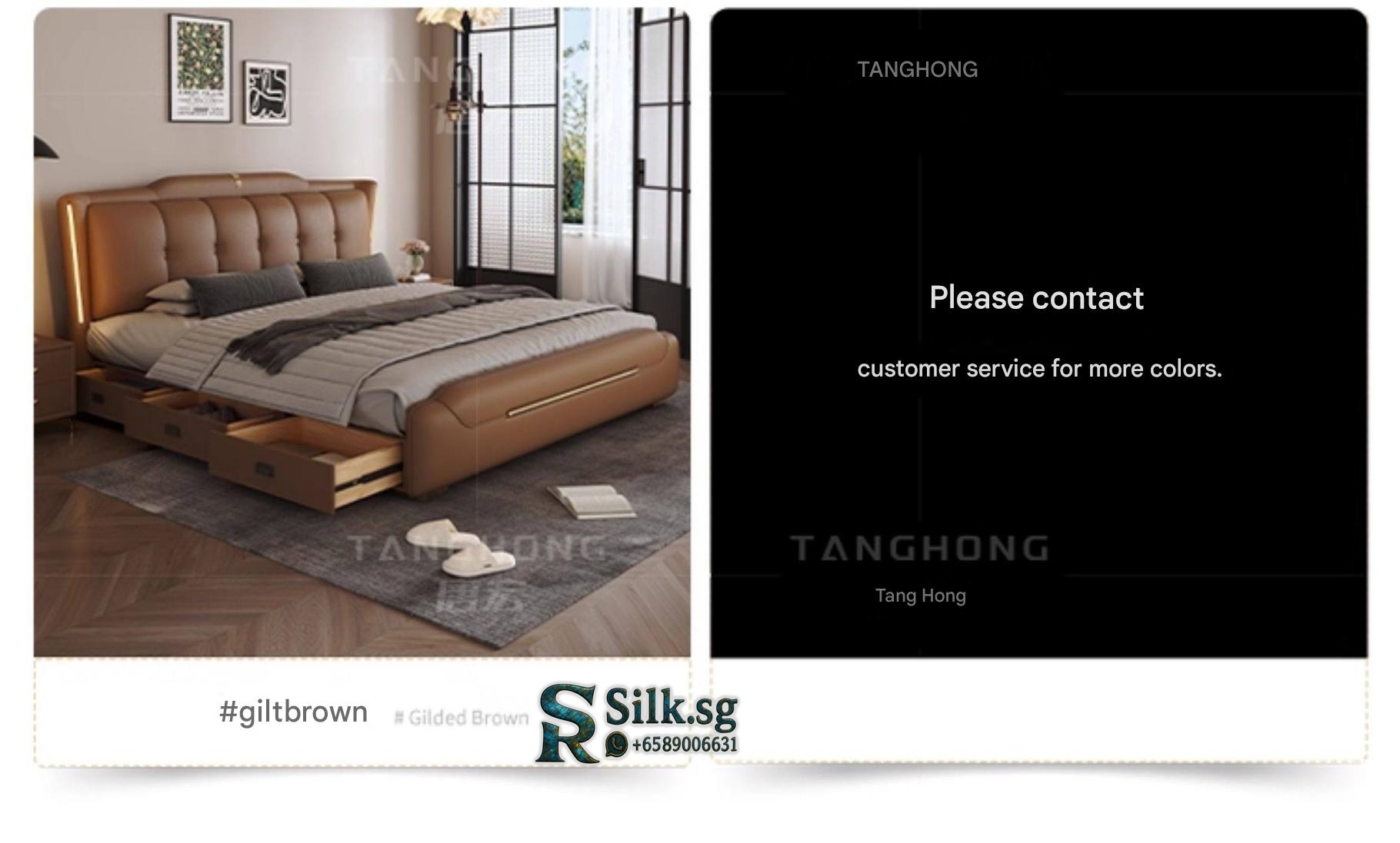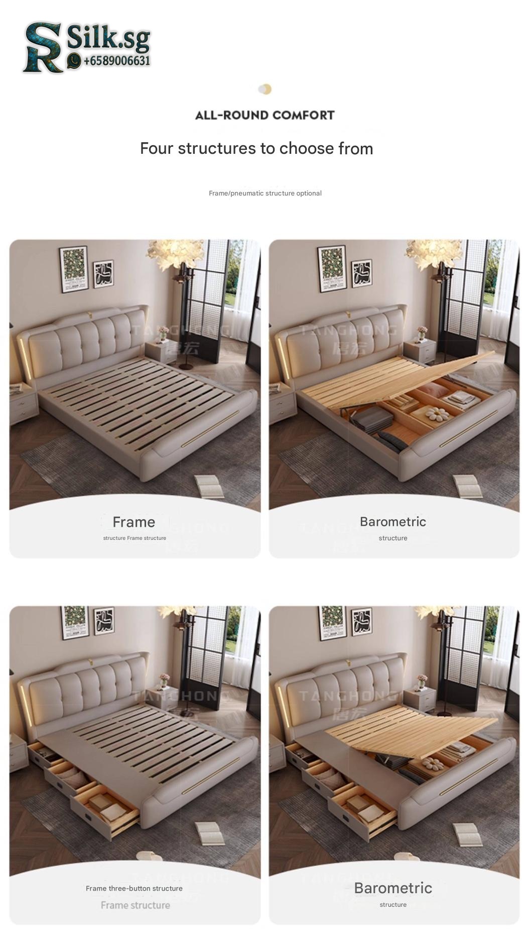 0757 – Solid Wood Storage Bed 1.8m Genuine Leather Upholstered Modern