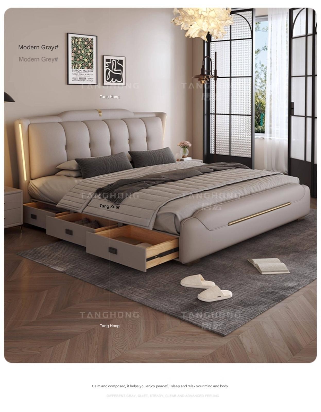 Leather Bed Main Bed – Leather Bed Main Bedroom High-End Elegant Modern Minimalist 2025 New M