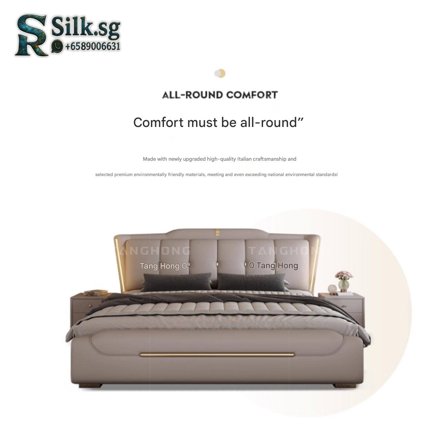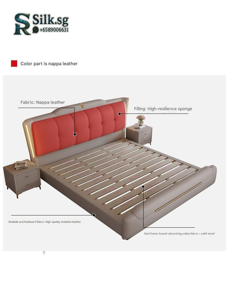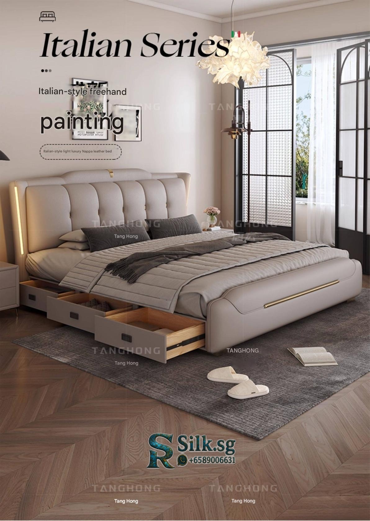 #0 Factory – Italian Genuine Leather Bed 2m Modern Minimalist Master B