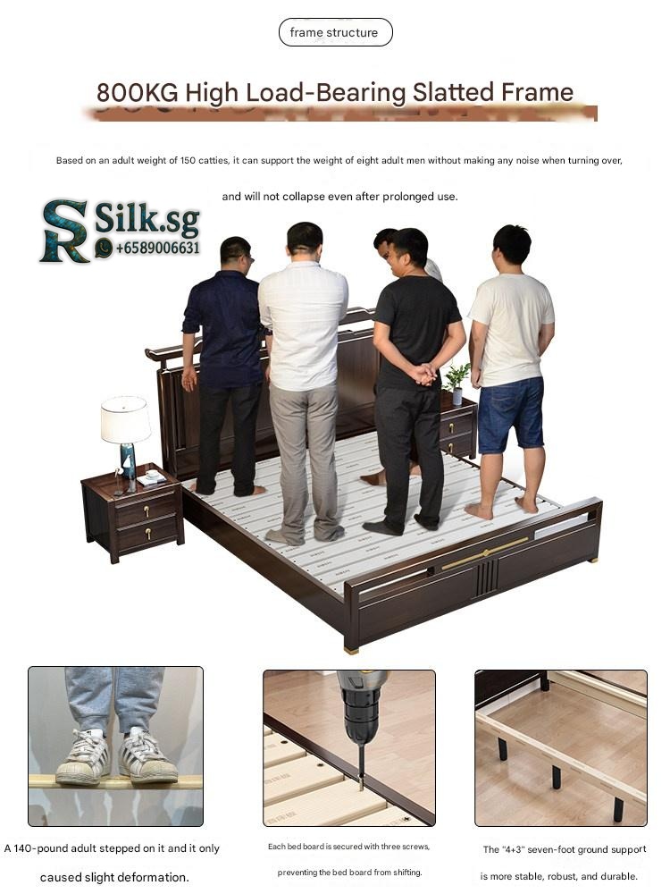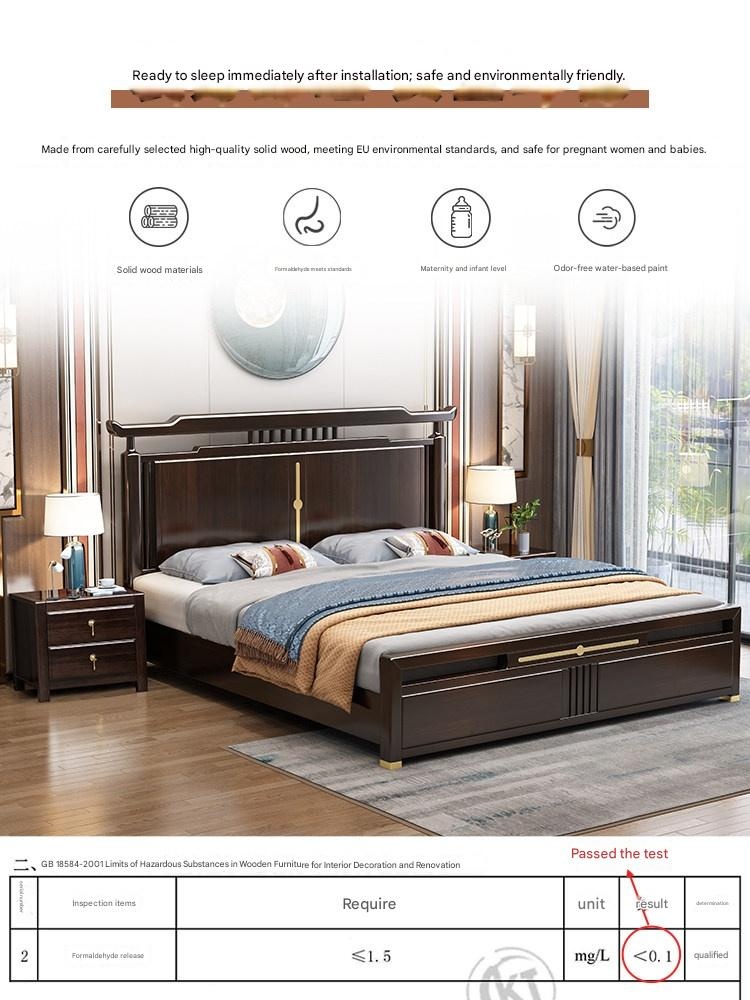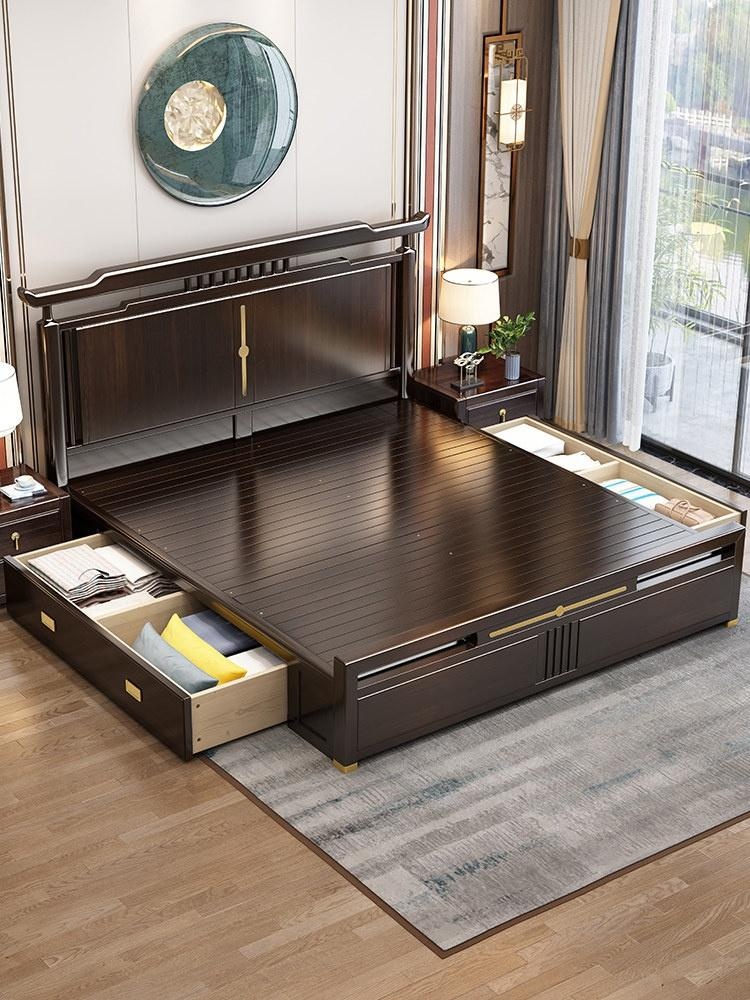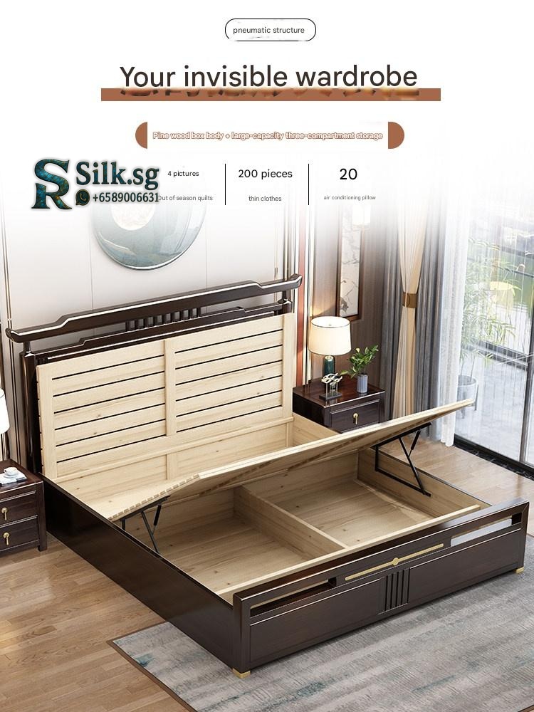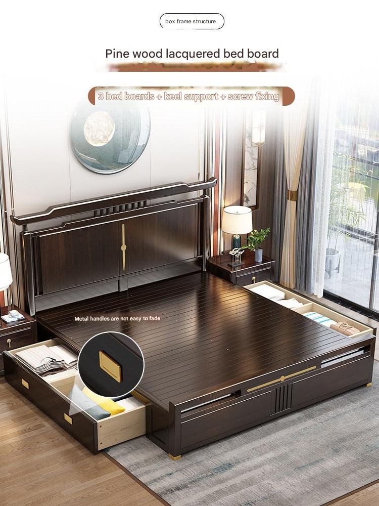 Zhenlemei – New Chinese Style Solid Wood Storage Bed 1.8m Modern Minim