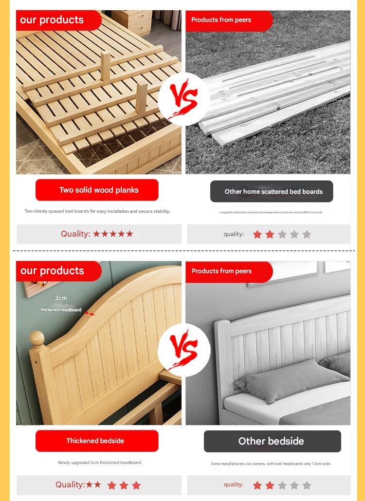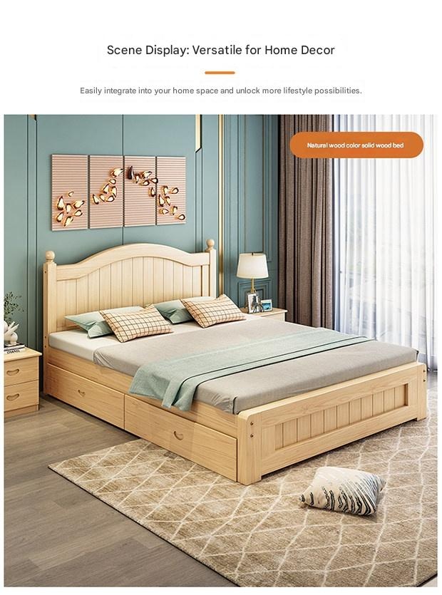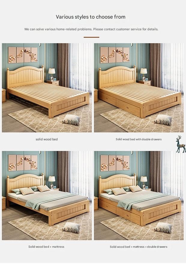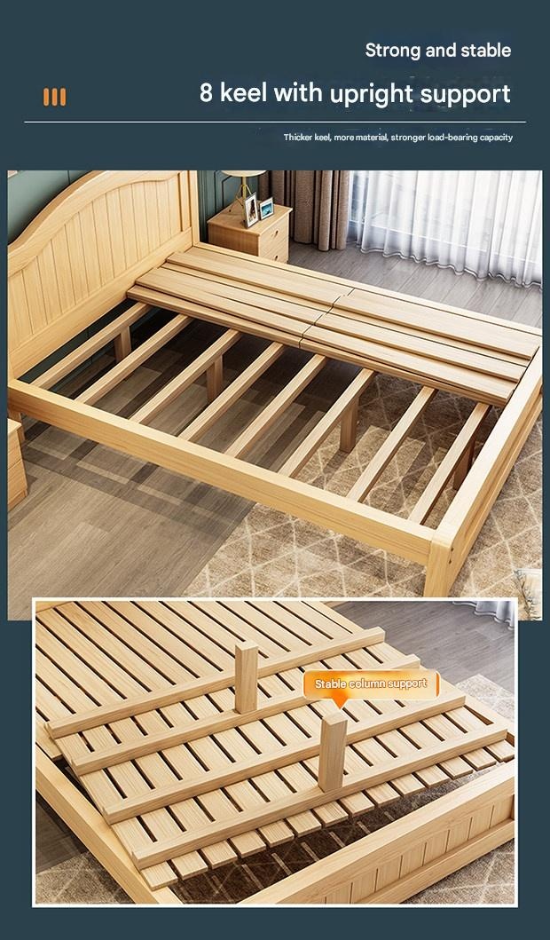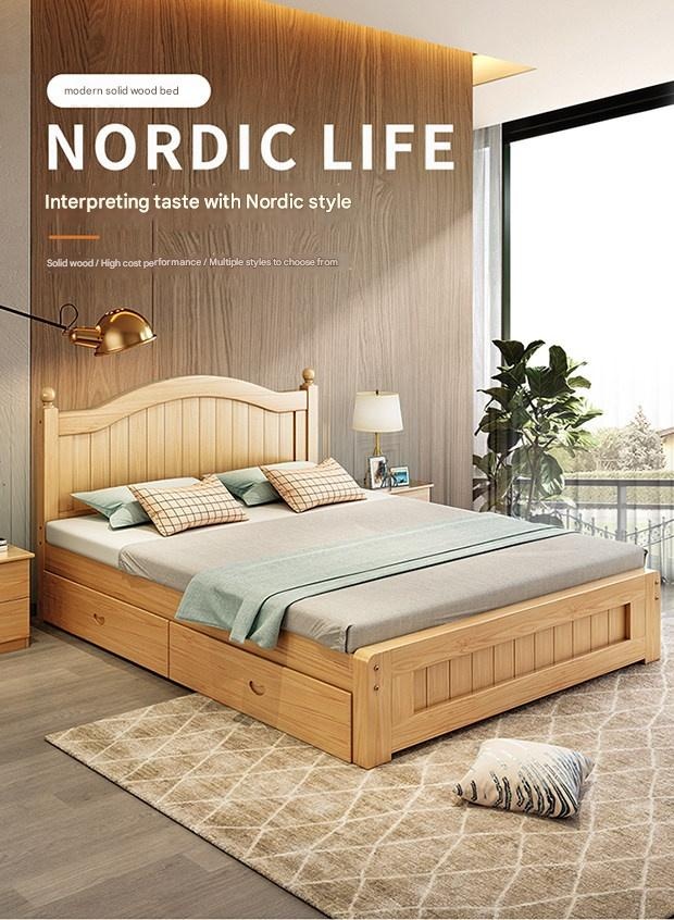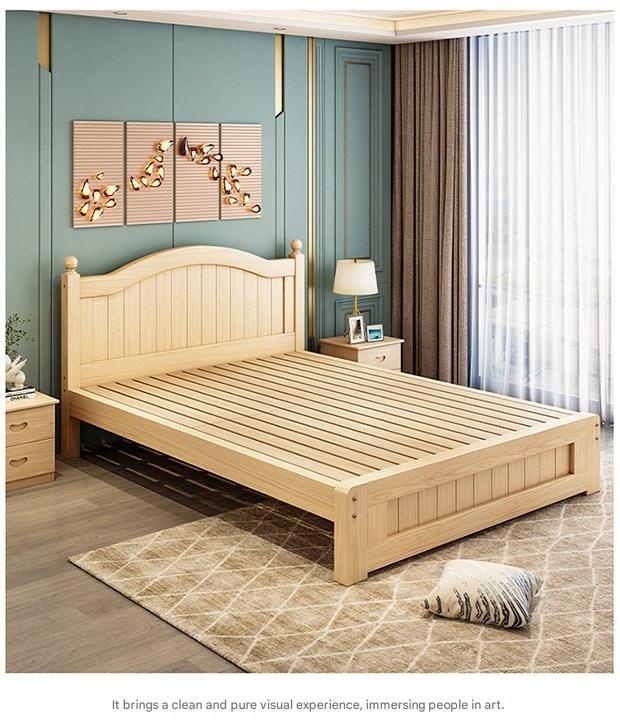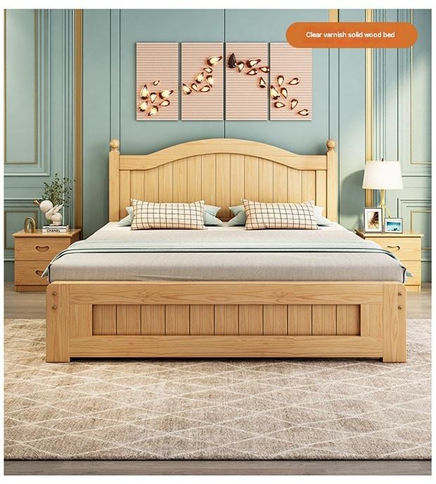 Solid Wood Bed Moder – Solid Wood Bed Modern Minimalist Double Bed 1.5m Economical Soft Pack