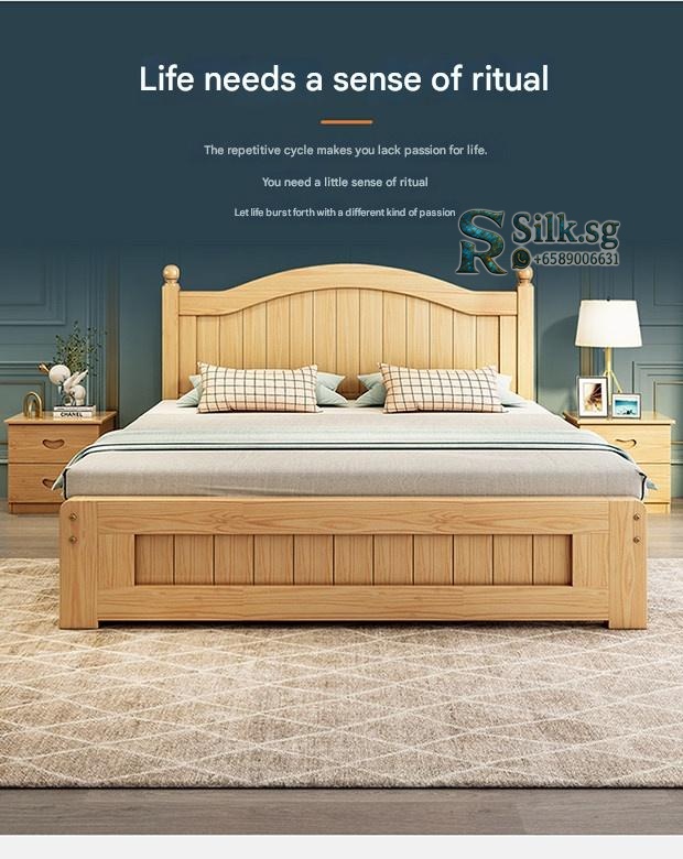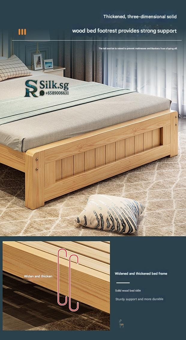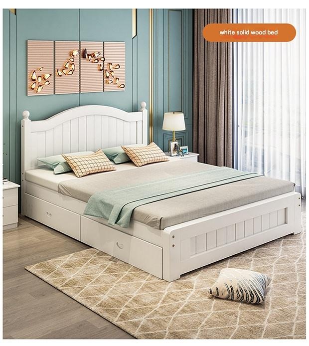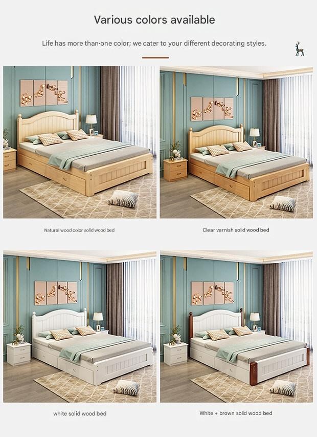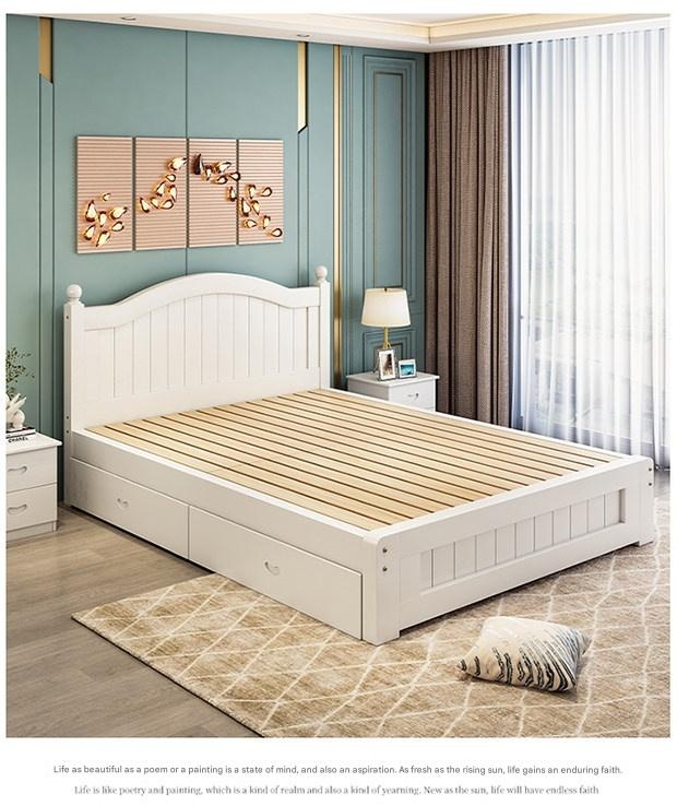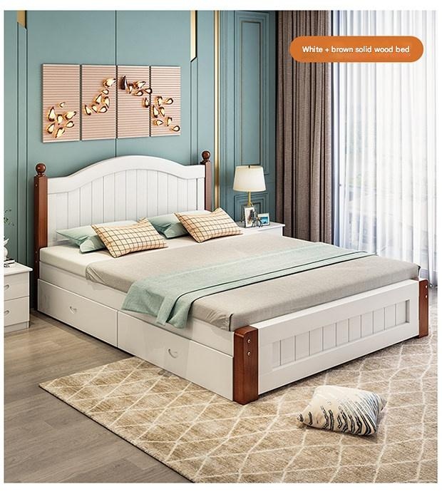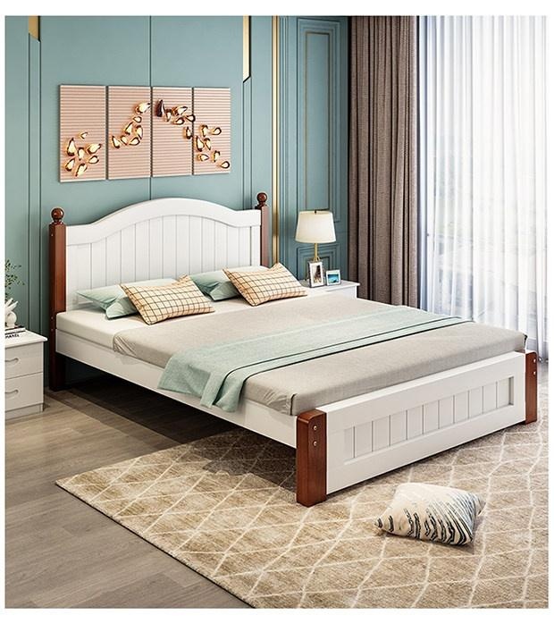 Solid Wood Bed Moder – Solid Wood Bed Modern Minimalist Double Bed 1.5m Economical Soft Pack