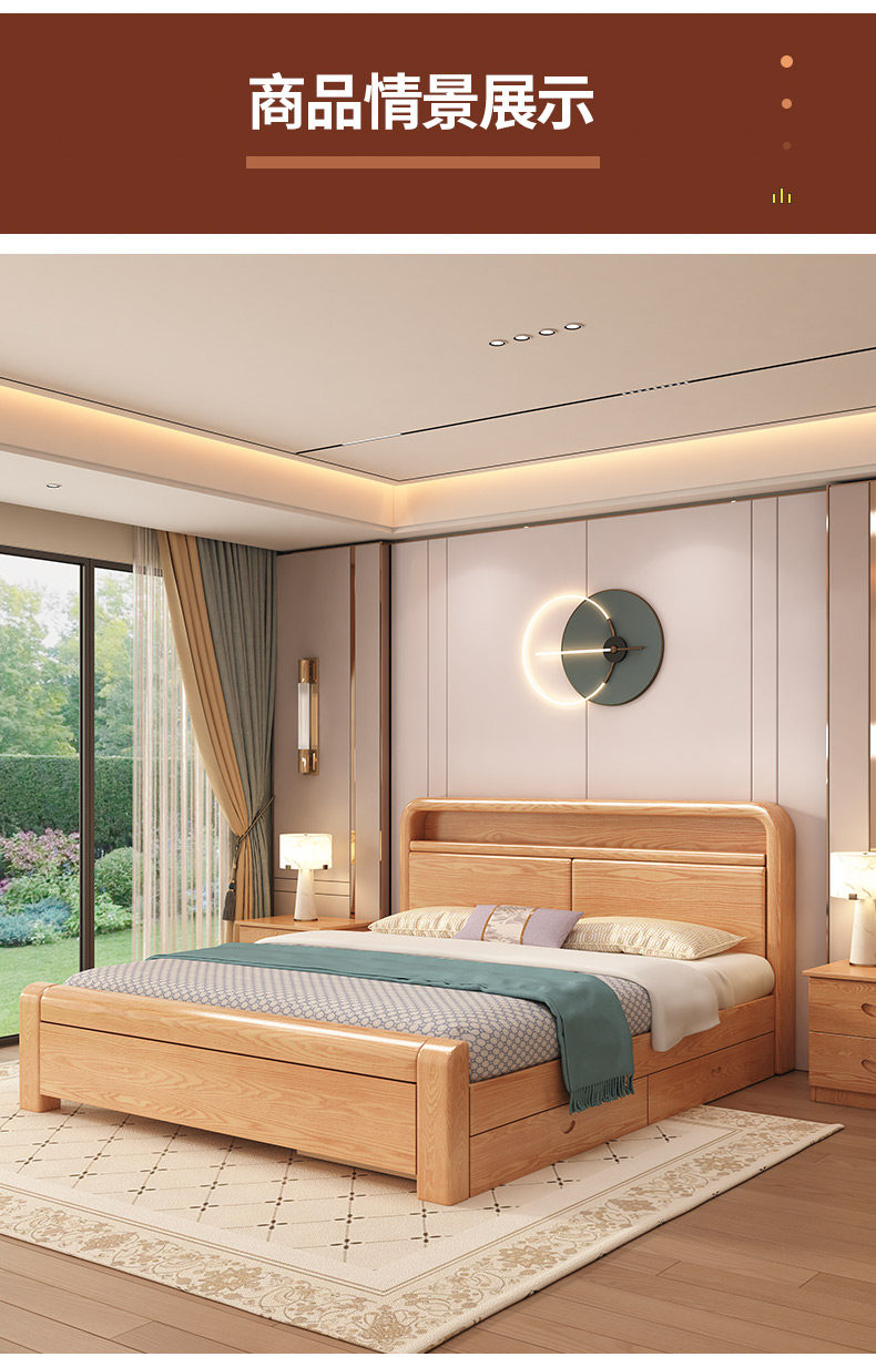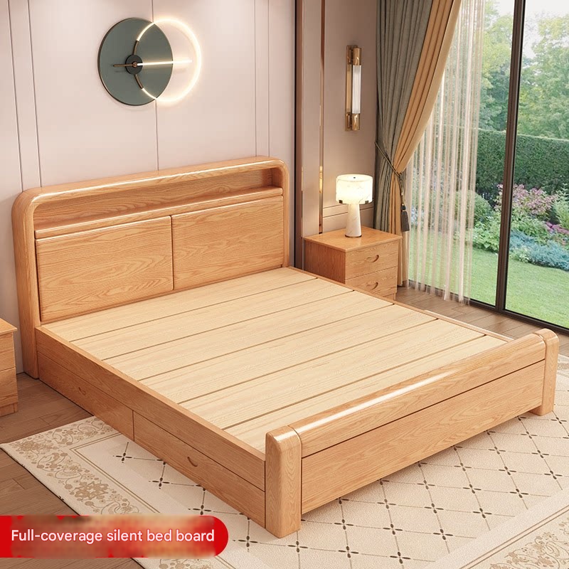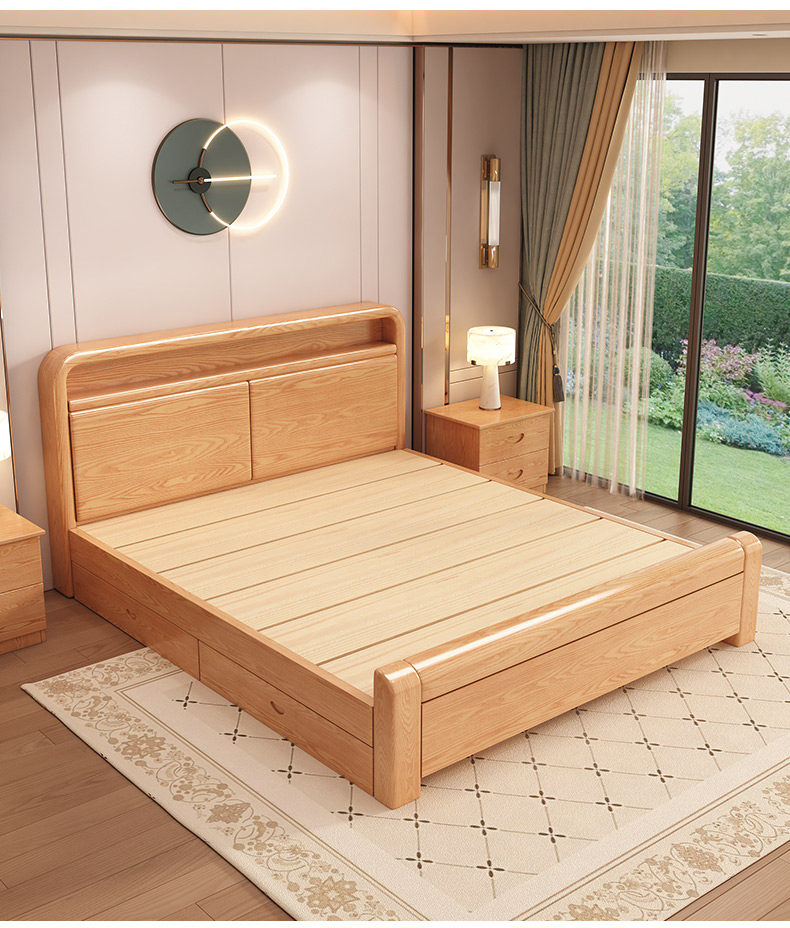 Fengyuanju – Chinese Minimalist Solid Wood Bed with Storage, 1.2 – 1.8