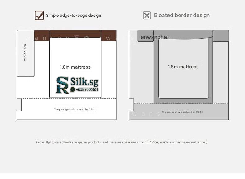 | Color | Black and White Bed (no installation), Black and White Bed (with installation), Black and White Bed + 10cm Spine Protection Coconut Mattress, Black and White Bed + 10cm Spine Protection Coconut Mattress + 1 Cabinet, Black and White Bed + 10cm Spine Protection Coconut Mattress + 2 Cabinets, Black and White Bed + 20cm Spring Mattress, Black and White Bed + 20cm Spring Mattress + 1 Cabinet, Black and White Bed + 20cm Spring Mattress + 2 Cabinets, Black and White Bed + Bedside Table x1, Black and White Bed + Bedside Table x2, Brown and White Bed (no installation), Brown and White Bed (with installation), Brown and White Bed + 10cm Spine Protection Coconut Mattress, Brown and White Bed + 10cm Spine Protection Coconut Mattress + 1 Cabinet, Brown and White Bed + 10cm Spine Protection Coconut Mattress + 2 Cabinets, Brown and White Bed + 20cm Spring Mattress, Brown and White Bed + 20cm Spring Mattress + 1 Cabinet, Brown and White Bed + 20cm Spring Mattress + 2 Cabinets, Brown and White Bed + Bedside Table x1, Brown and White Bed + Bedside Table x2, Headboard Cabinet 45*40*42cm (door-to-door), Headboard Cabinet 45*40*42cm (installation included) |