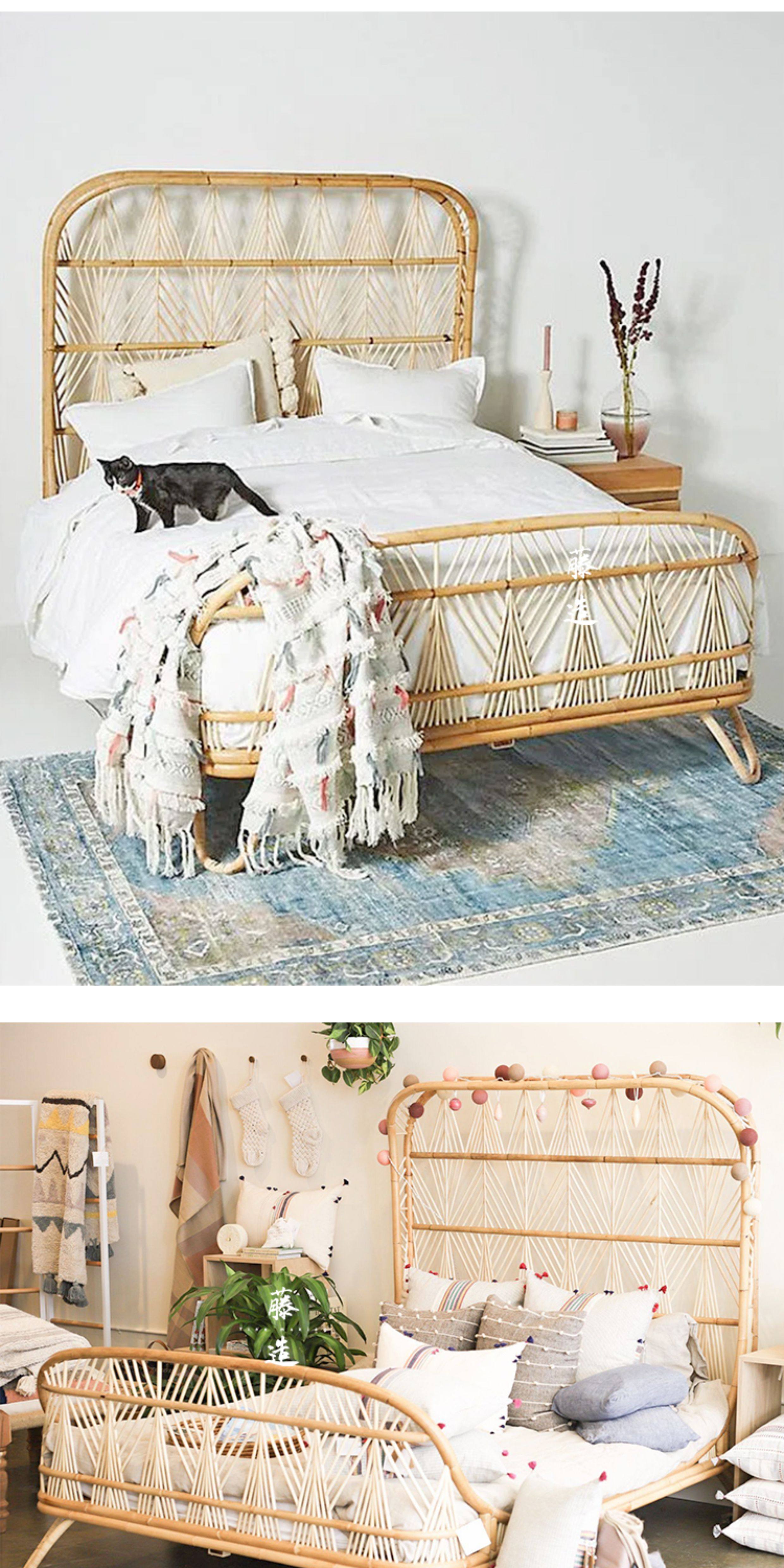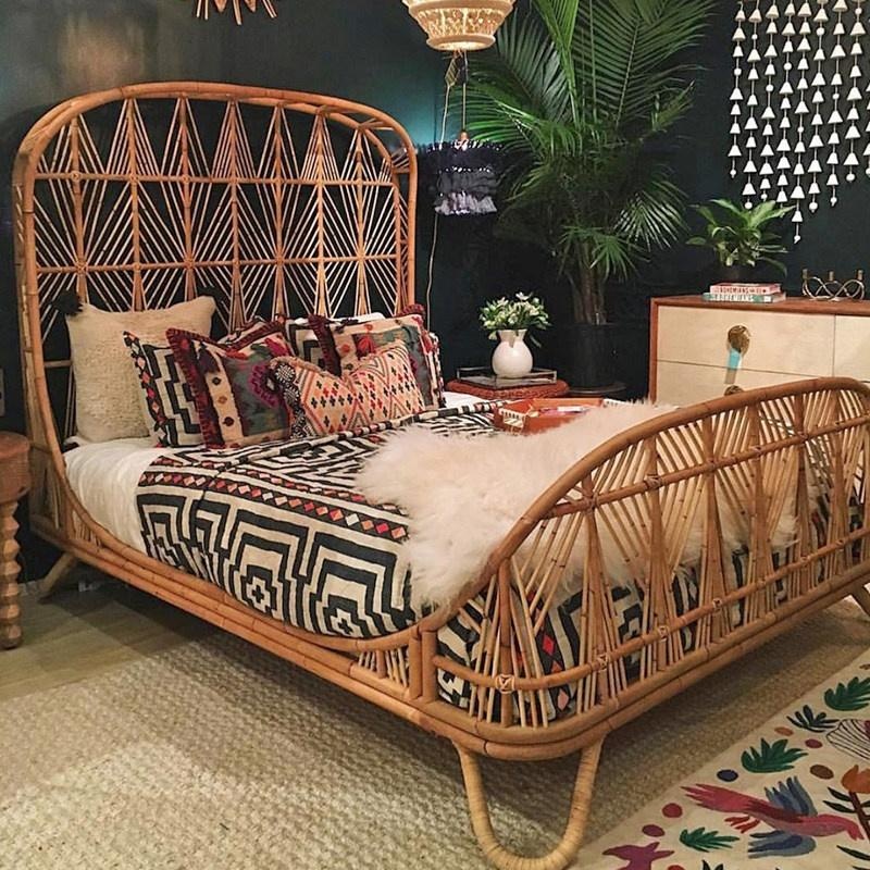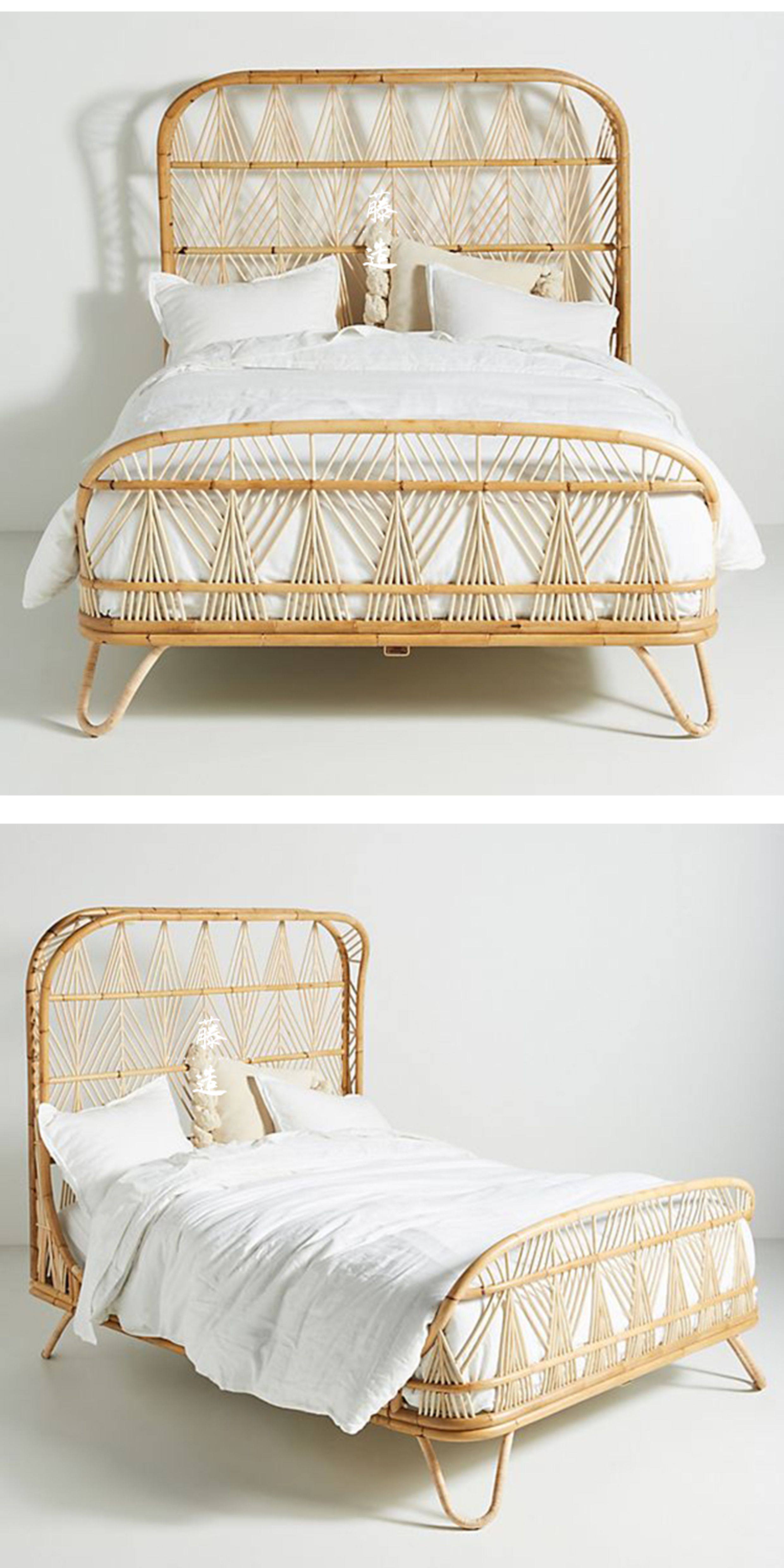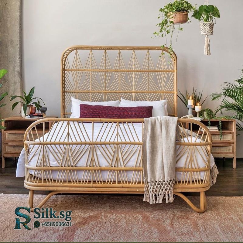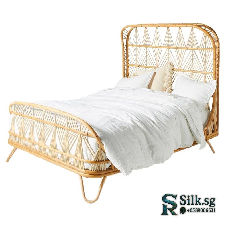 TZM – Southeast Asian Rattan Double Bed 1.5m/1.8m, Handwoven Vintage W