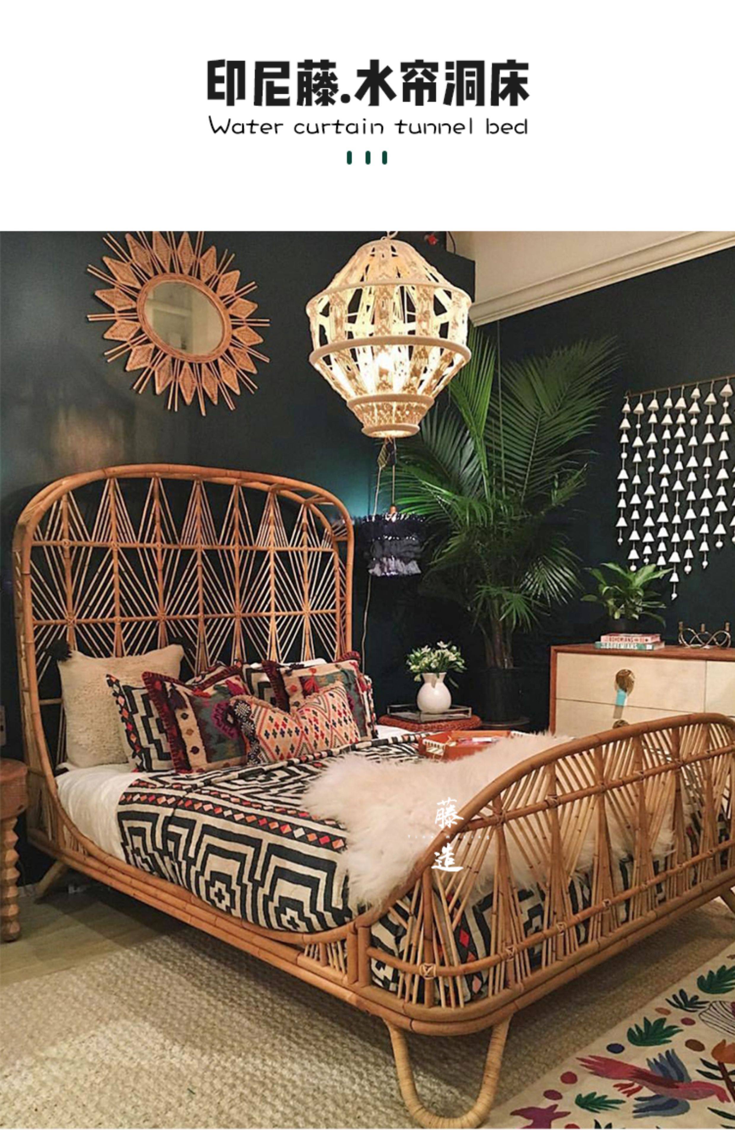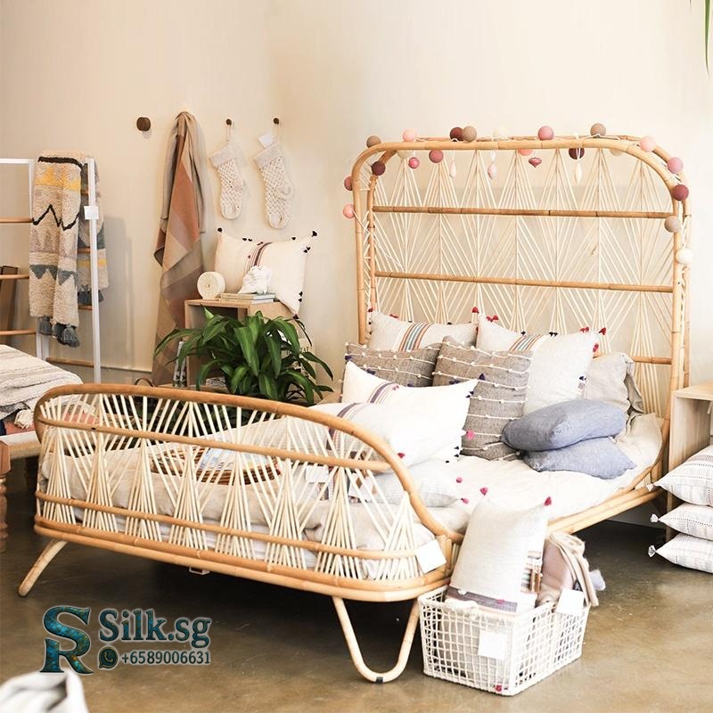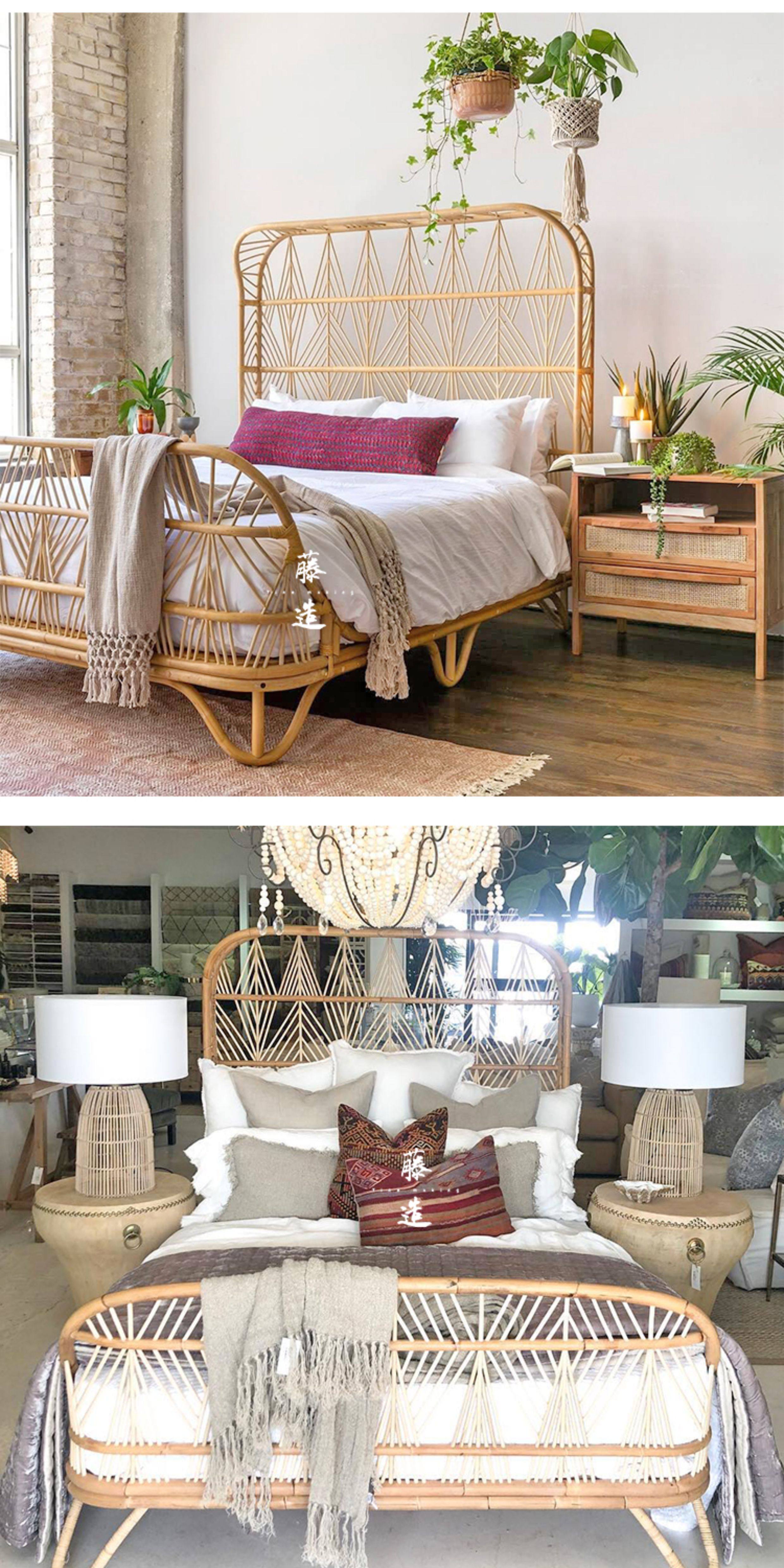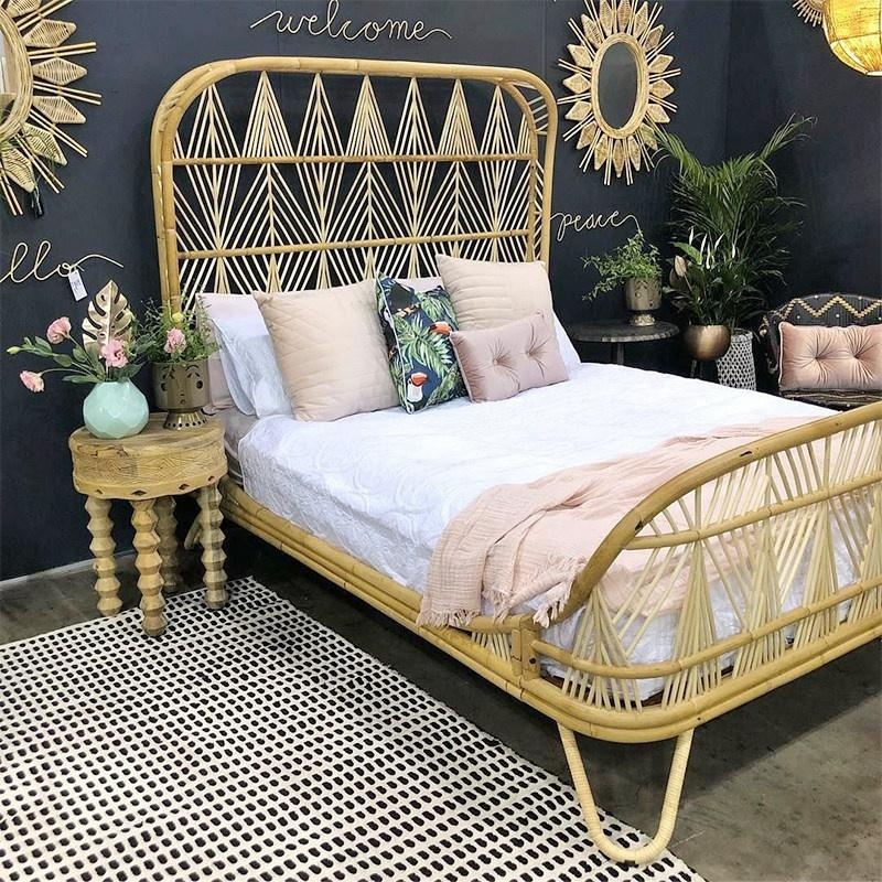 Crafted from natural rattan with connected weaving, this Southeast Asian style bed brings artistic warmth to any bedroom. Perfect for creating a serene homestay or inn retreat, it’s fully customizable to match your unique vision. Transform your space with this durable, handcrafted centerpiece.