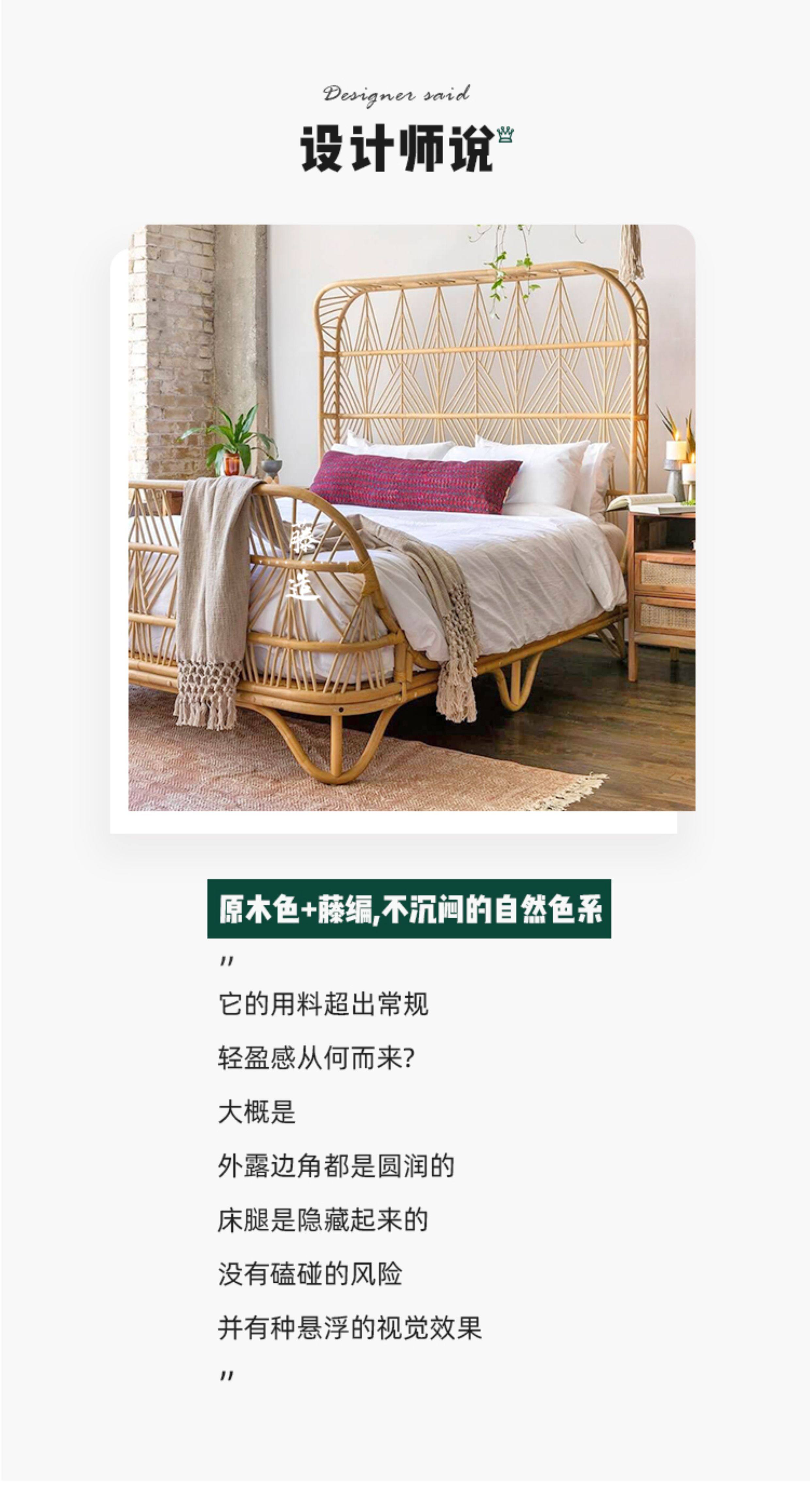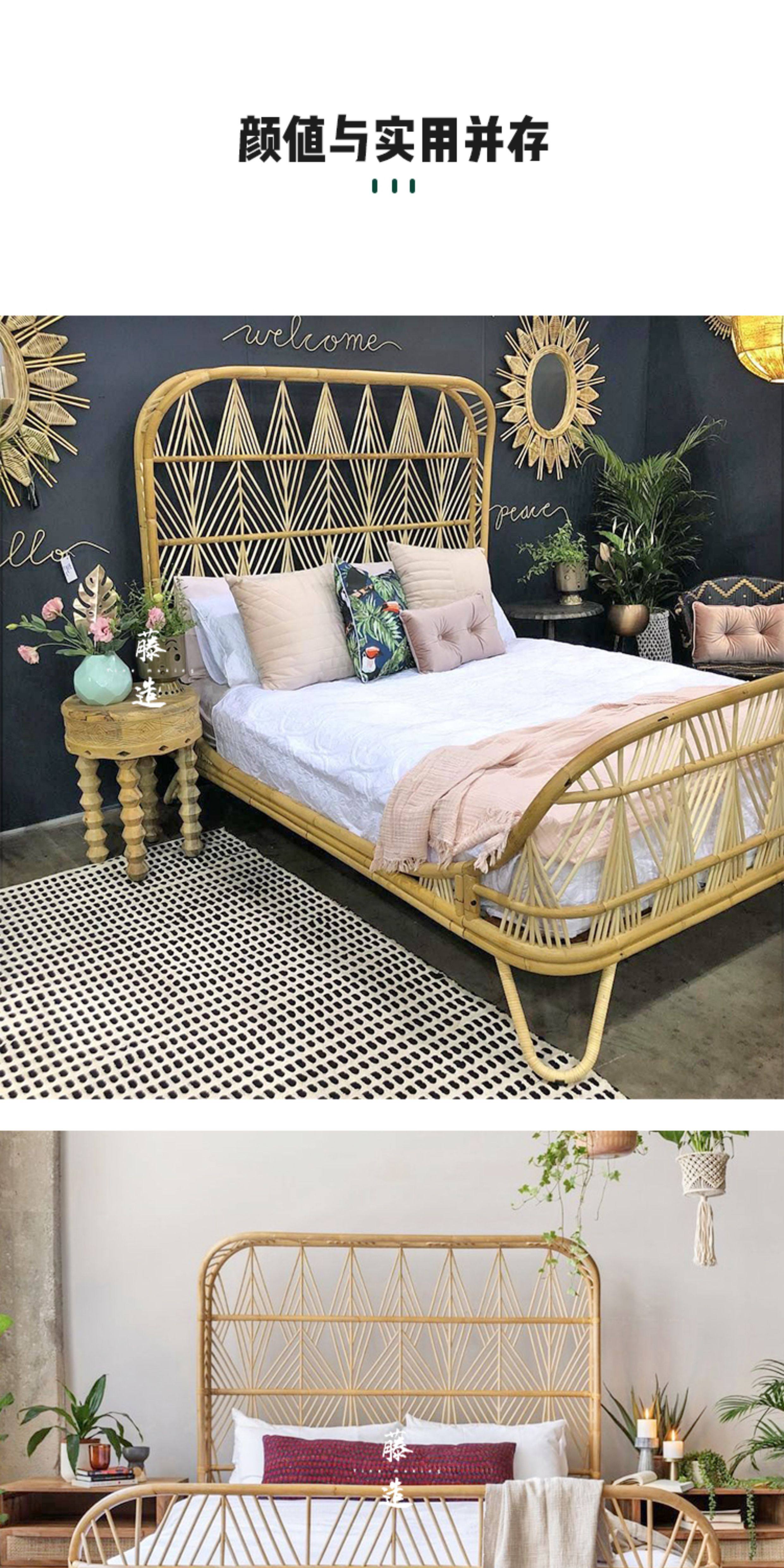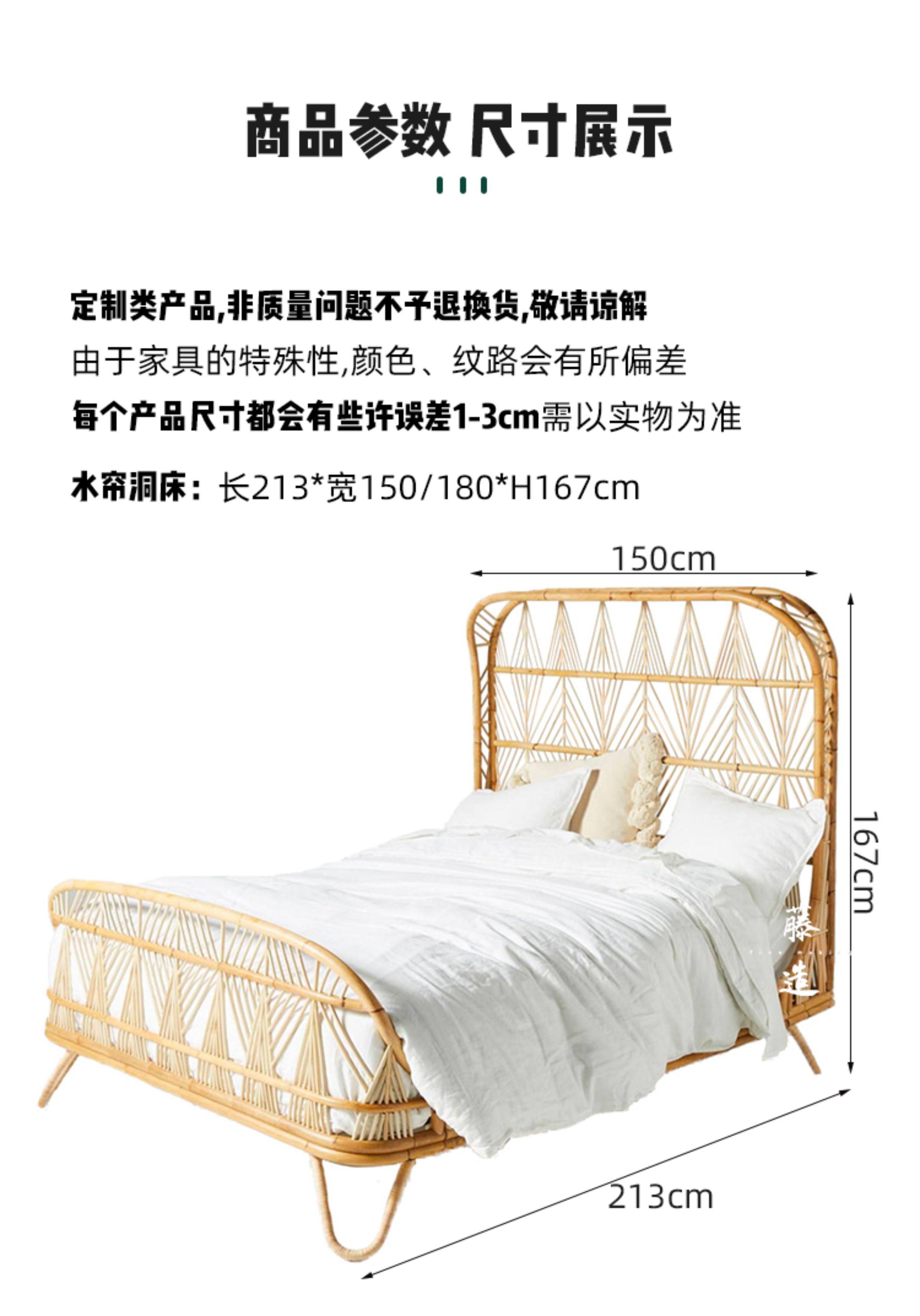 Crafted from natural rattan with connected weaving, this Southeast Asian style bed brings artistic warmth to any bedroom. Perfect for creating a serene homestay or inn retreat, it’s fully customizable to match your unique vision. Transform your space with this durable, handcrafted centerpiece.
