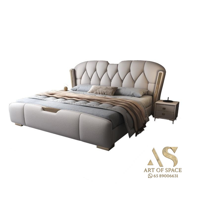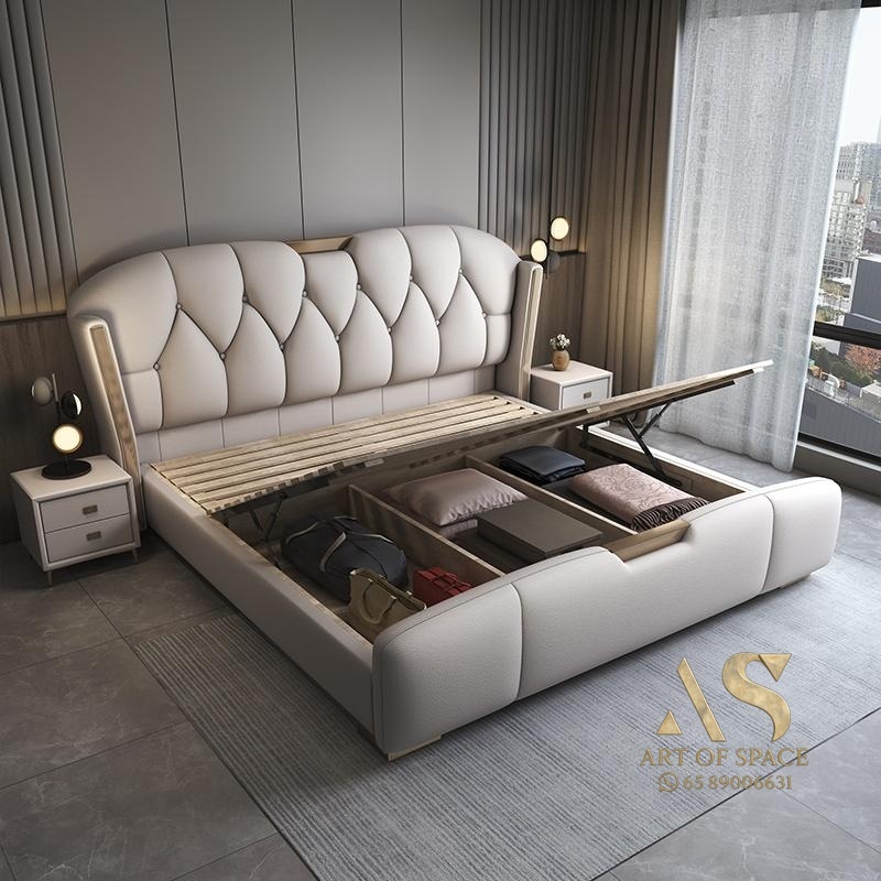 Aizhen – Italian Minimalist Genuine Leather Storage Bed 1.8m Double Mo