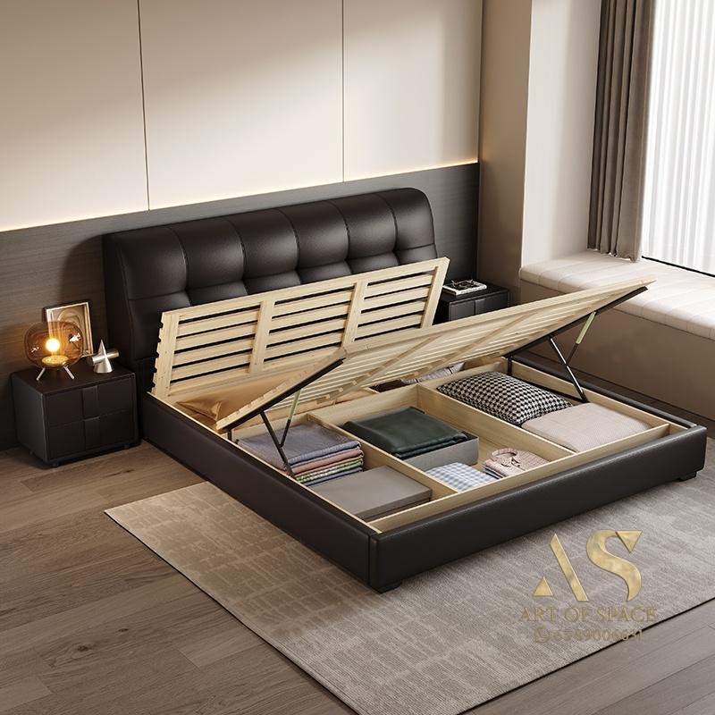 #0 Factory – Genuine Leather Storage Bed Italian Style Double Bed
