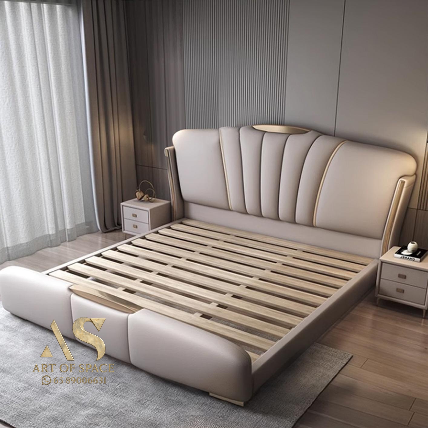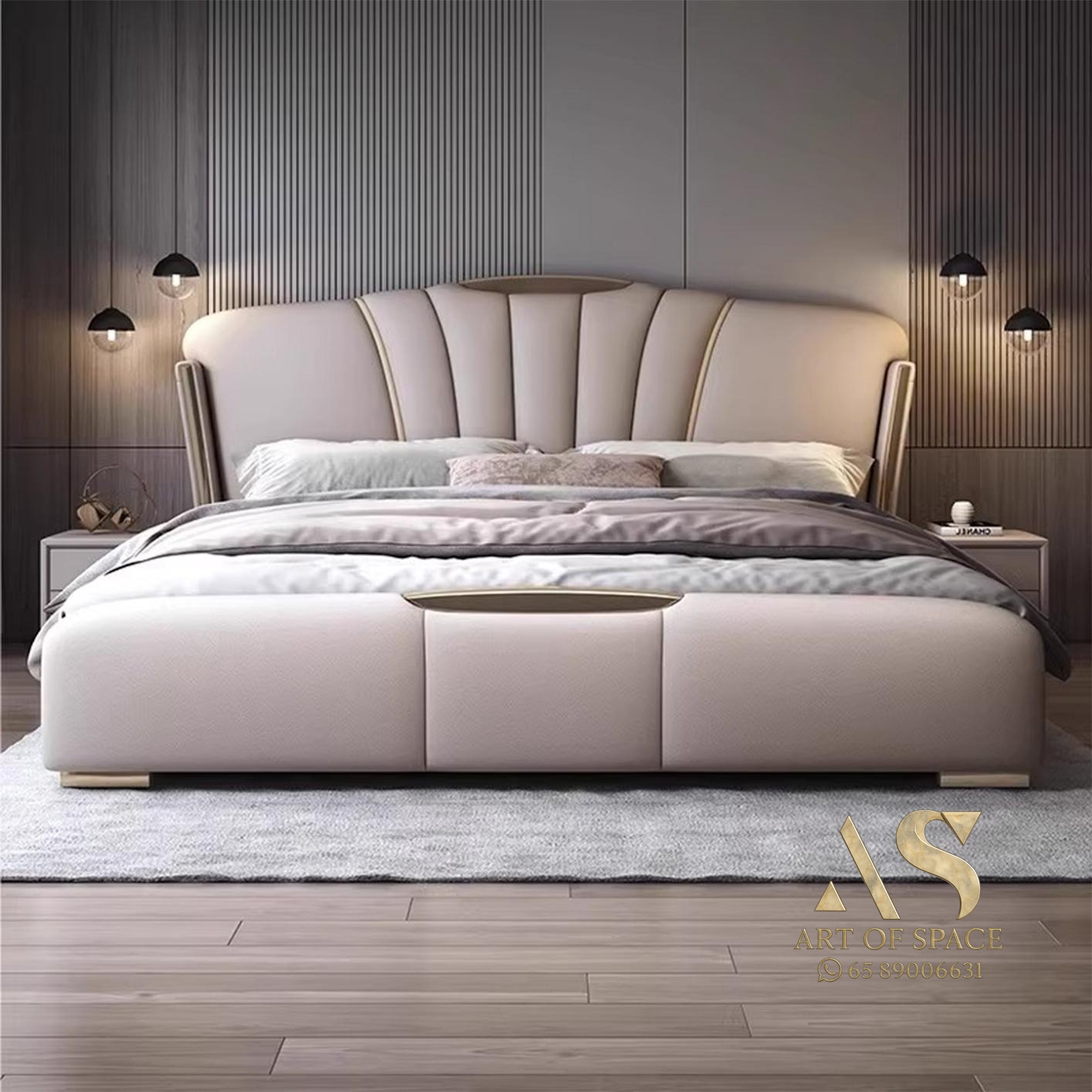 Yunfu – Italian Luxury Leather Bed 1.8m/1.5m Upholstered Solid Wood Fr