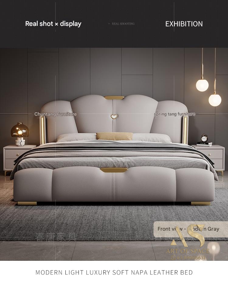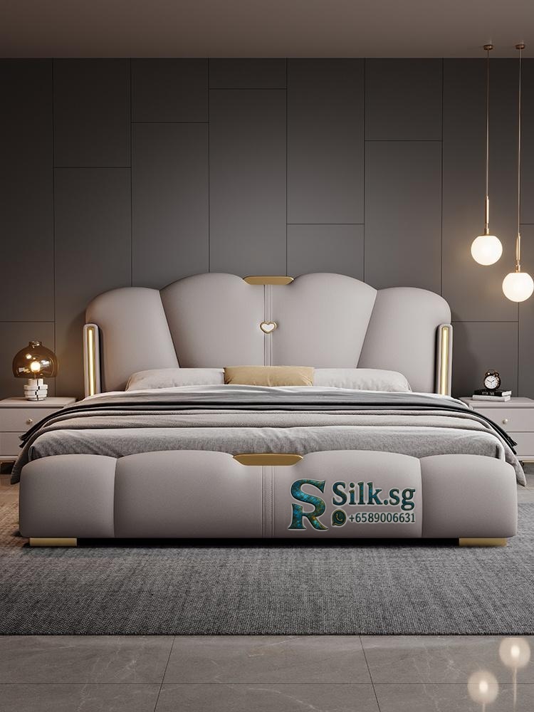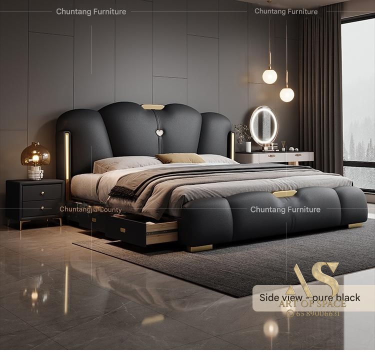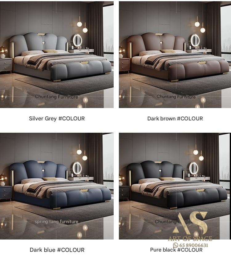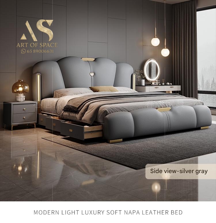 Experience modern elegance and exceptional comfort with this genuine leather minimalist master bedroom bed, perfect for relaxation and stylish living. Its durable design and customizable options make it ideal for creating a cozy, luxurious retreat at home.