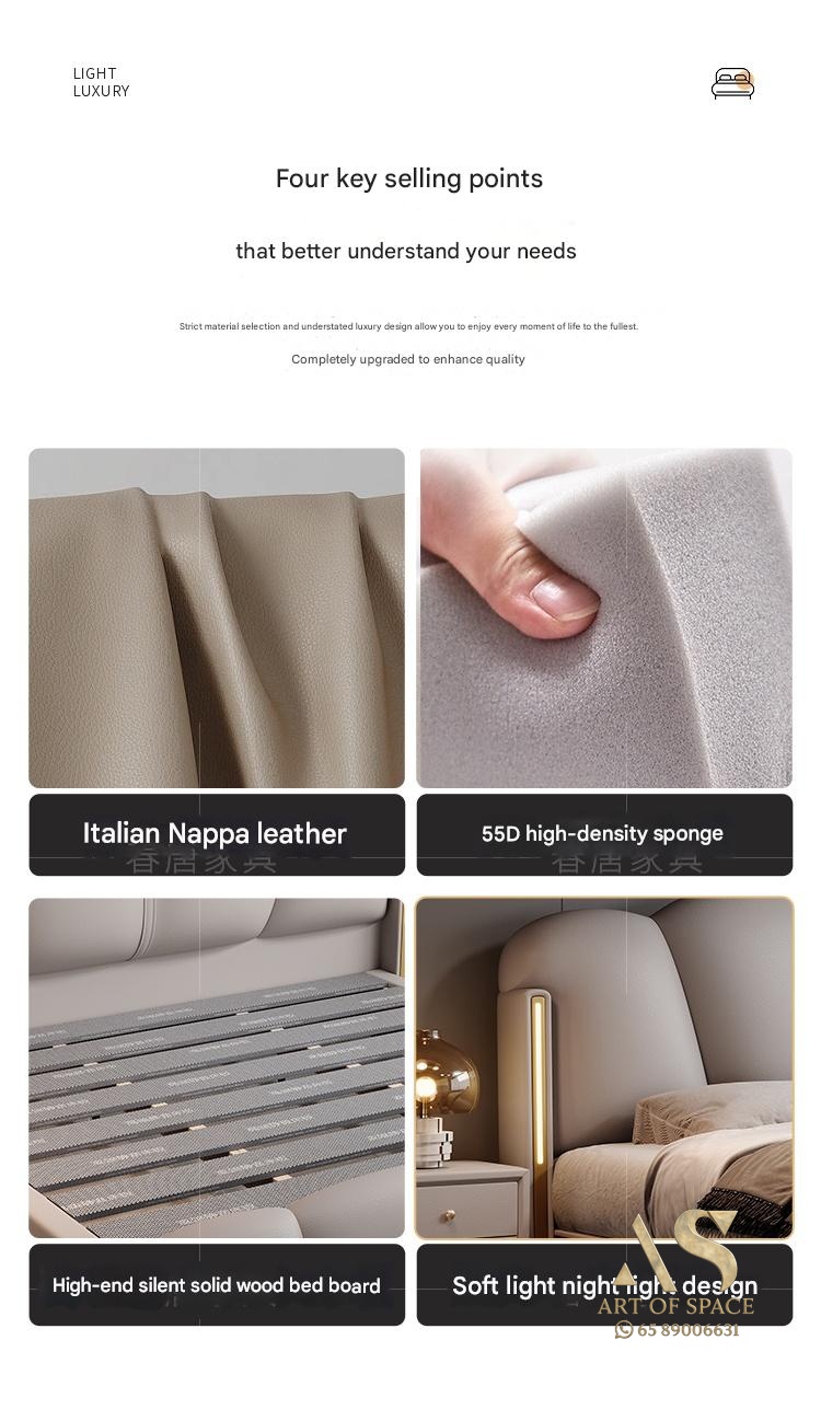 | Color | Luxury bed with 9-star Tencel removable washable double-use mattress, Luxury bed with 9-star Tencel removable washable double-use mattress & 2 cabinets, Luxury bed with all-weather nano independent spring latex mattress & 2 cabinets, Luxury bed with flagship Good Sleep ice silk double-use mattress pad, Luxury bed with flagship Good Sleep ice silk double-use mattress pad & 2 cabinets, Luxury leather bed with 2 cabinets, Luxury leather bed with 5-star antibacterial mite-proof mattress, Luxury leather bed with 5-star antibacterial mite-proof mattress & 1 cabinet, Luxury leather bed with 5-star antibacterial mite-proof mattress & 2 cabinets, Luxury leather bed with 7-star firm independent jacquard mattress, Luxury leather bed with 7-star firm independent jacquard mattress & 1 cabinet, Luxury leather bed with 7-star firm independent jacquard mattress & 2 cabinets, Luxury leather bed with Cloud 0 Feel 9-zone 5D latex mattress, Luxury leather bed with Cloud 0 Feel 9-zone 5D latex mattress & 1 cabinet, Luxury leather bed with Cloud 0 Feel 9-zone 5D latex mattress & 2 cabinets, Luxury leather bed with Samsung spine protection coconut mattress, Luxury leather bed with Samsung spine protection coconut mattress & 2 cabinets, Luxury leather bed with all-weather nano independent spring latex mattress, Luxury leather bed with single mattress |