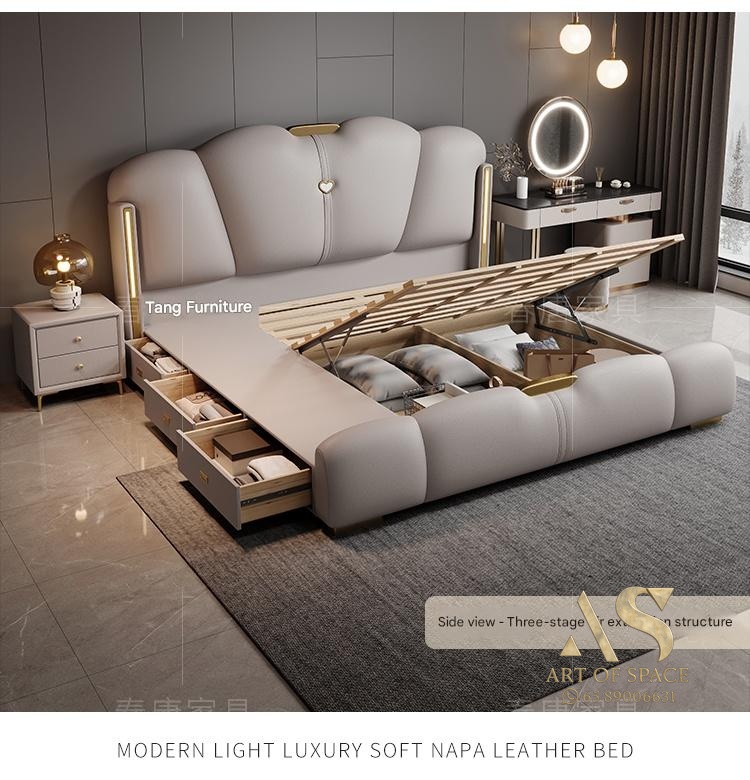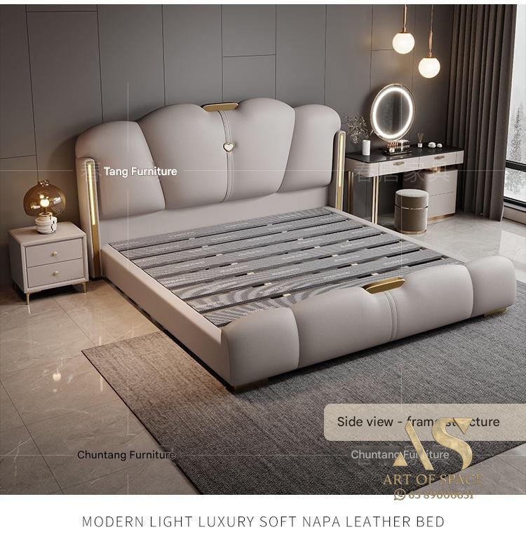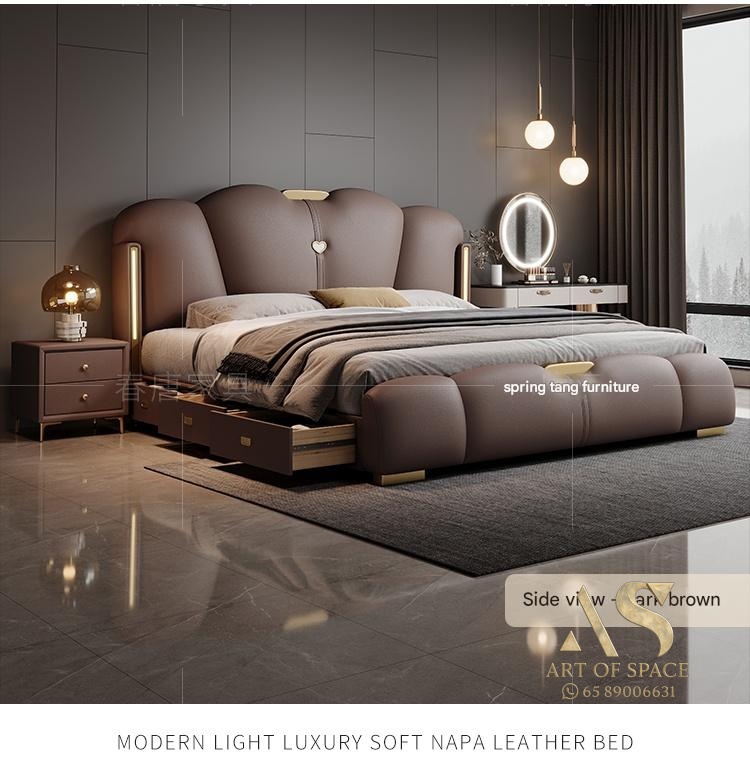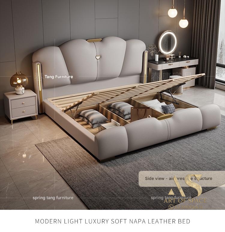 Italian Light Luxury – Italian Light Luxury Genuine Leather Bed Main Bedroom 1.8m Large Bed D